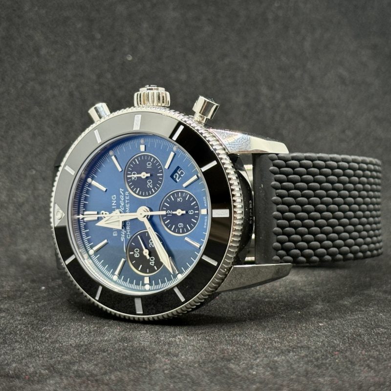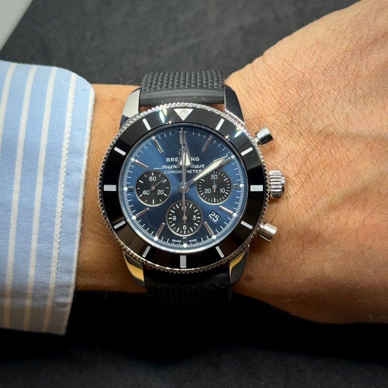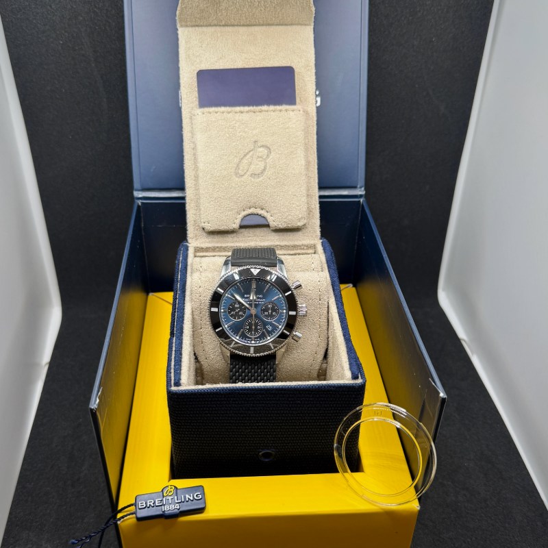 Breitling Superocean Heritage II Chronograph B01 come nuovo, mai indossato. Cassa in acciaio 44 mm, calibro B01, vetro zaffiro e cinturino in caucciù.