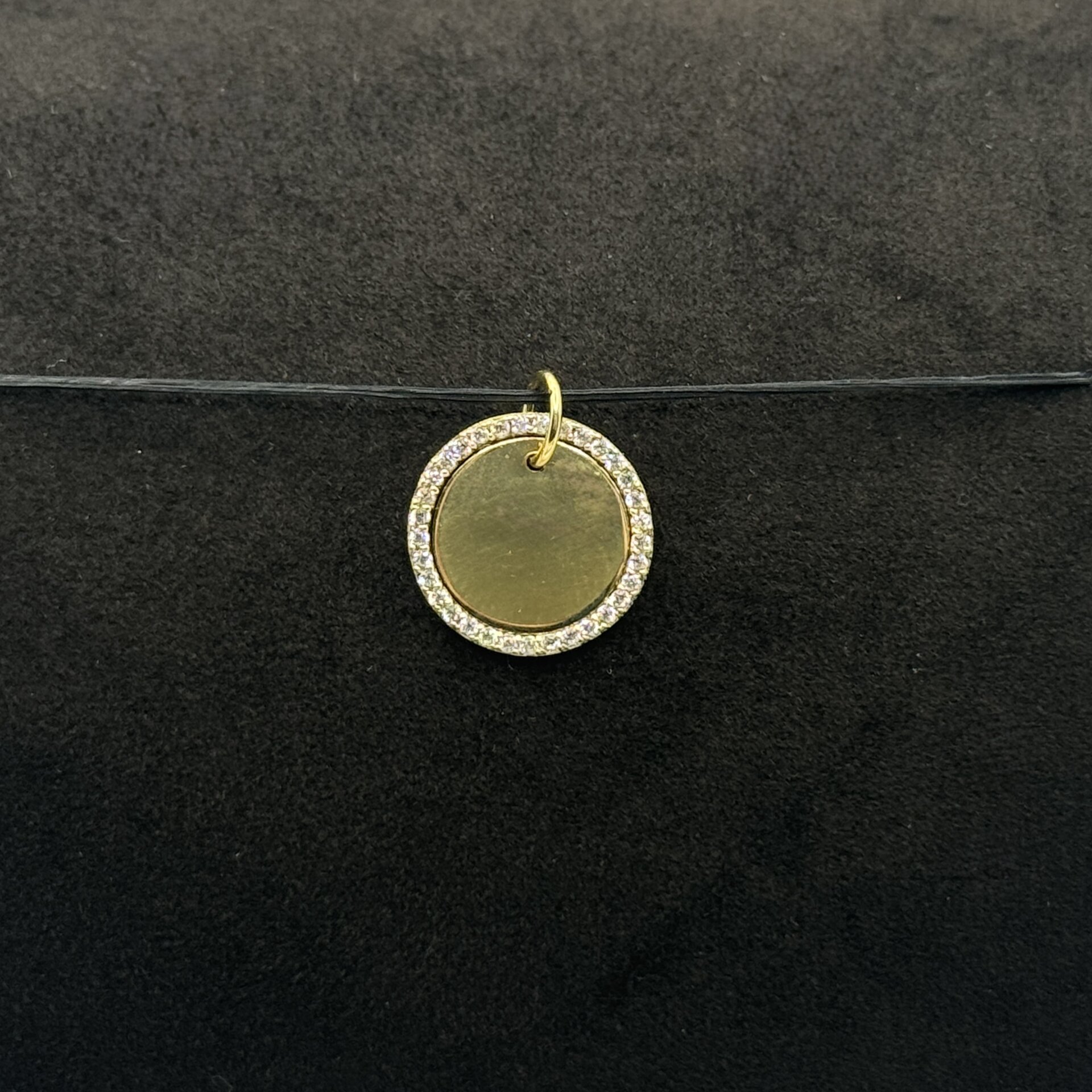 Ciondolo Stroili medaglia in oro giallo 9 kt con Swarovski, diametro 15 mm. Elegante e simbolico, con confezione e certificazione ufficiale Stroili Gioielli.