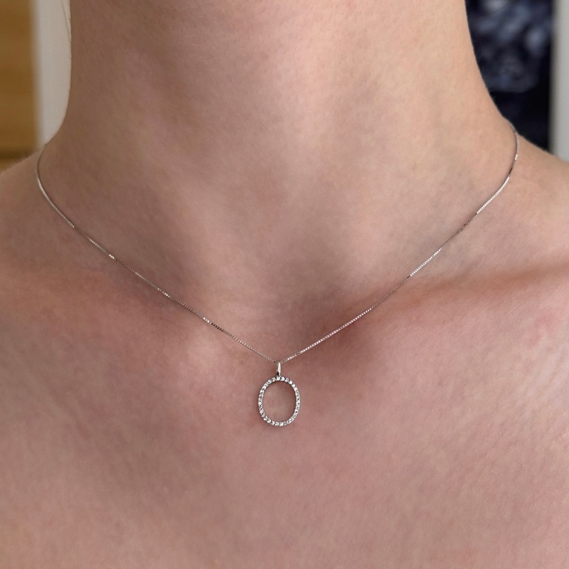La luminosità dei cristalli Swarovski, celebri per il loro taglio perfetto, si abbina alla preziosità dell’oro bianco, creando un gioiello intramontabile, ideale da indossare ogni giorno o per arricchire outfit da sera. Il design minimal rende questa collana estremamente versatile: un accessorio che si adatta sia a look casual sia a momenti speciali.
