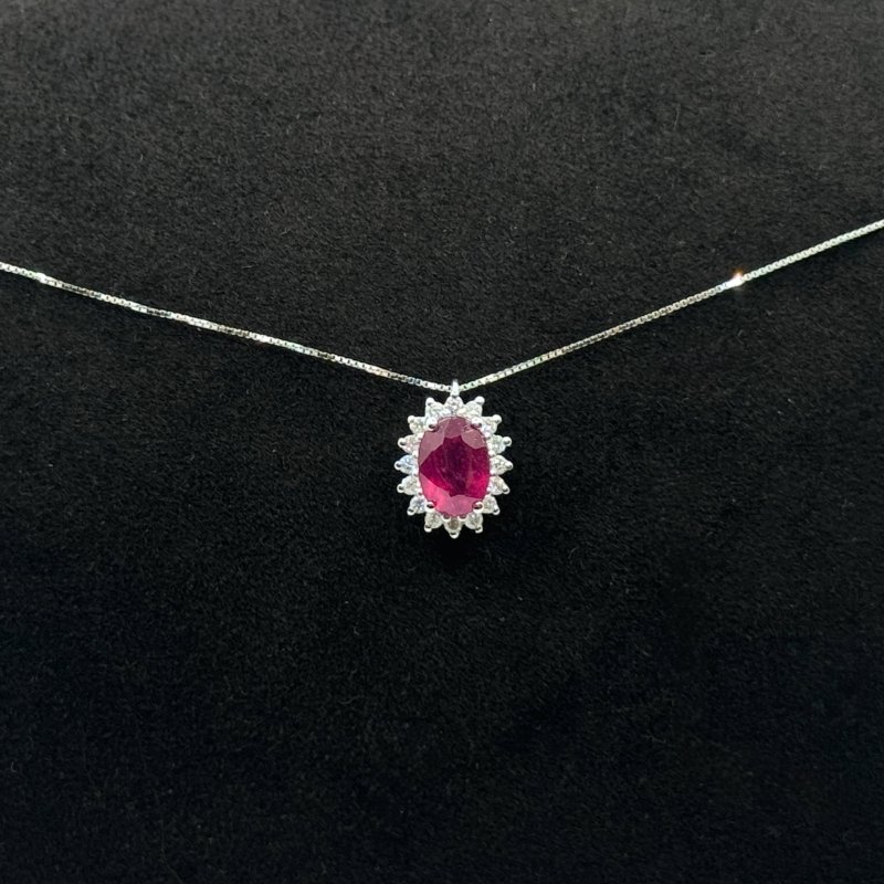 Collana Bibigì oro bianco 18 kt con rubino 1,37 ct e diamanti 0,14 ct G/SI. Eleganza e prestigio in un gioiello senza tempo.