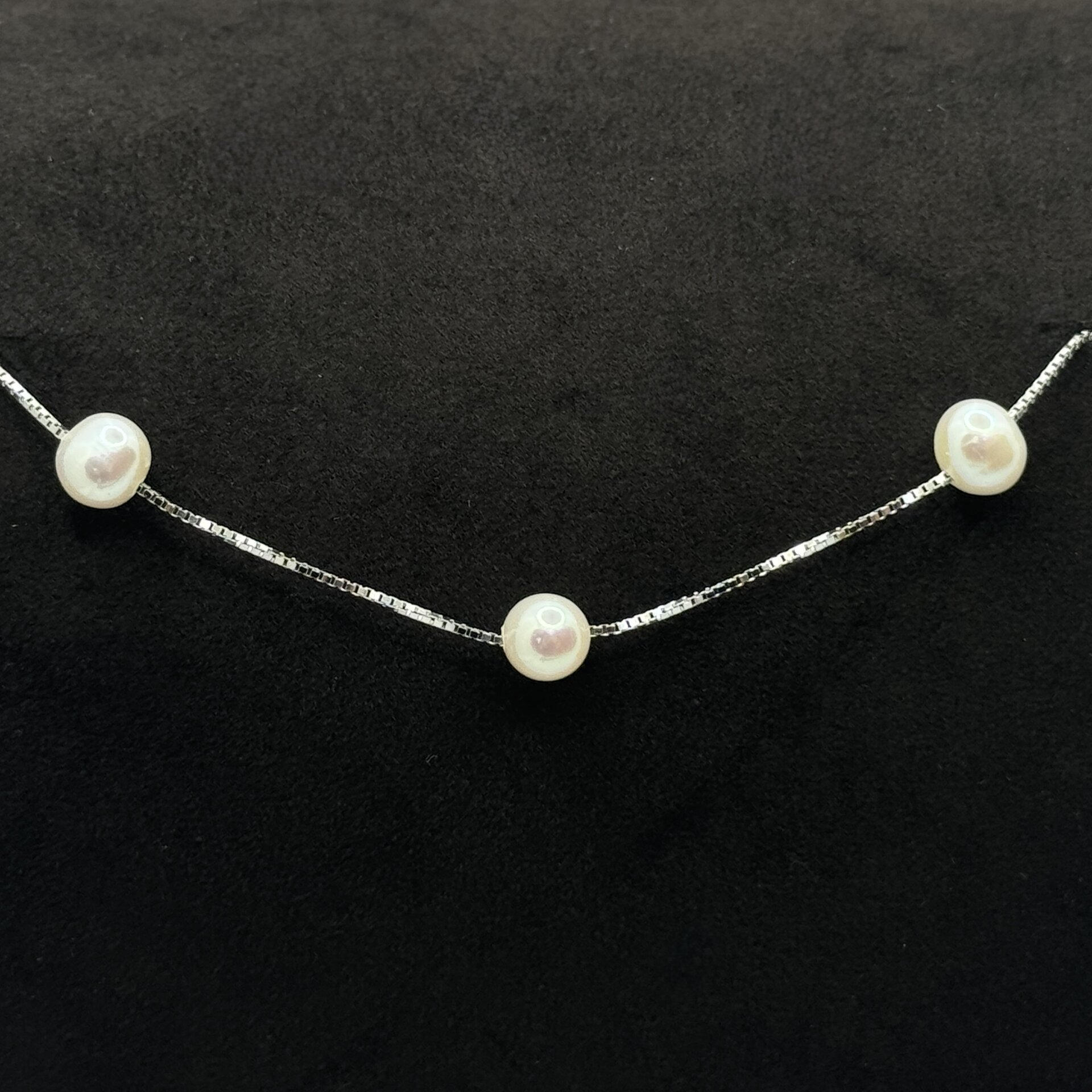 Collana Bluamante in Argento 925 Nickel Free con Perle Coltivate d’Acqua Dolce. Catenina 44 cm con chiusura a moschettone. Completa di scatola e garanzia ufficiale.