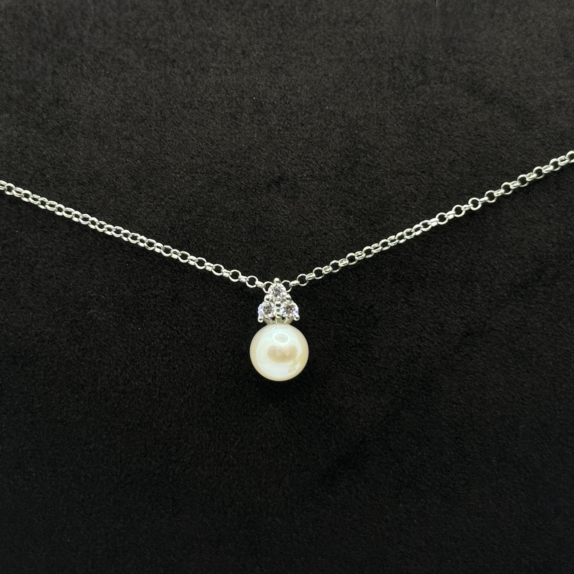 Il ciondolo, lungo 11 mm, ospita una Perla Coltivata d’Acqua Dolce da 6 mm, selezionata per la sua forma armoniosa e la lucentezza naturale che distingue solo le perle di qualità superiore. Gli elementi Swarovski inseriti nel design aggiungono un punto luce delicato ma d’impatto, creando un equilibrio perfetto tra eleganza classica e brillantezza contemporanea.