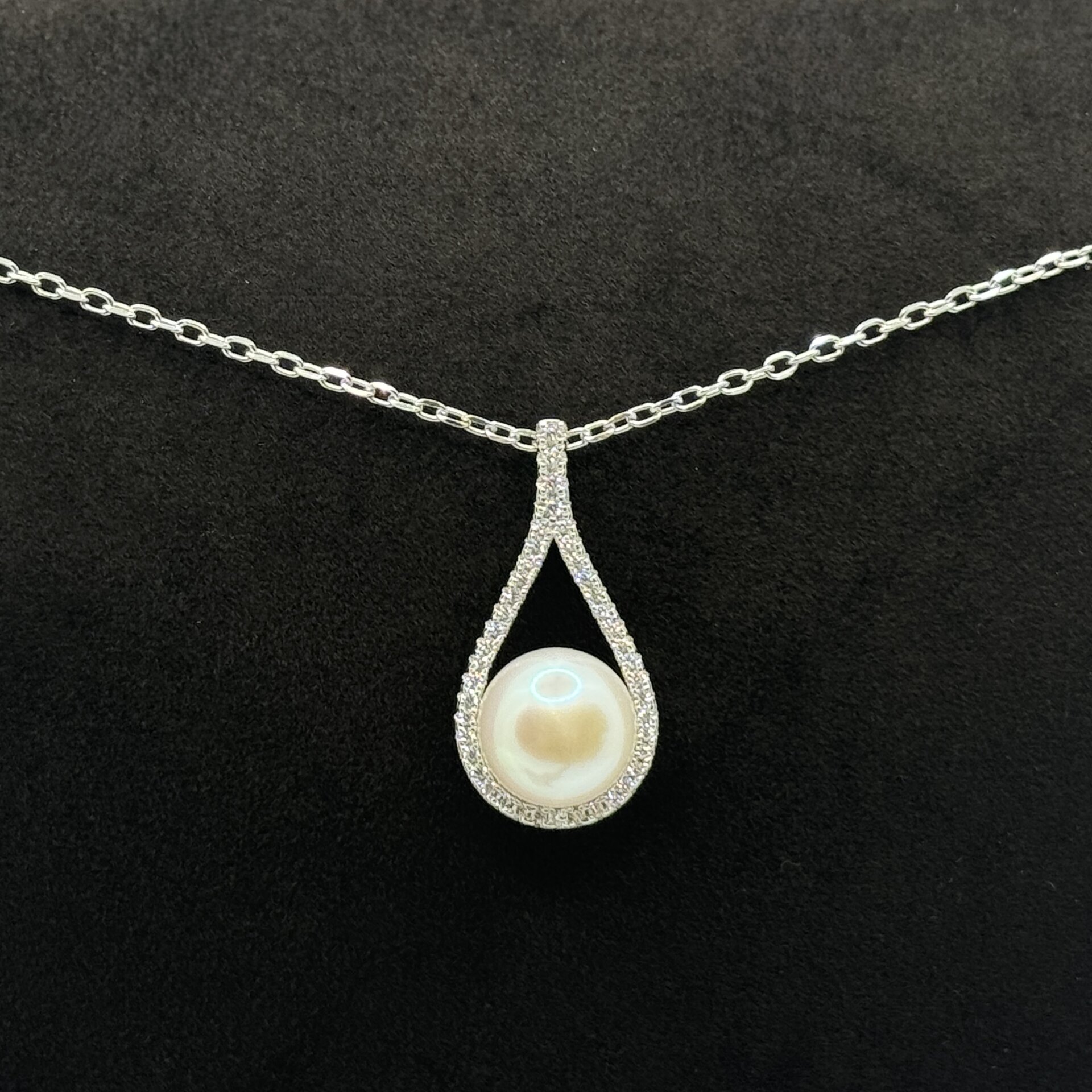 Collana Bluamante in Argento 925 Nickel Free con Swarovski e Perla Coltivata d’Acqua Dolce da 10 mm. Ciondolo 25 mm, catenina regolabile 42–45 cm. Con scatola e garanzia ufficiale.