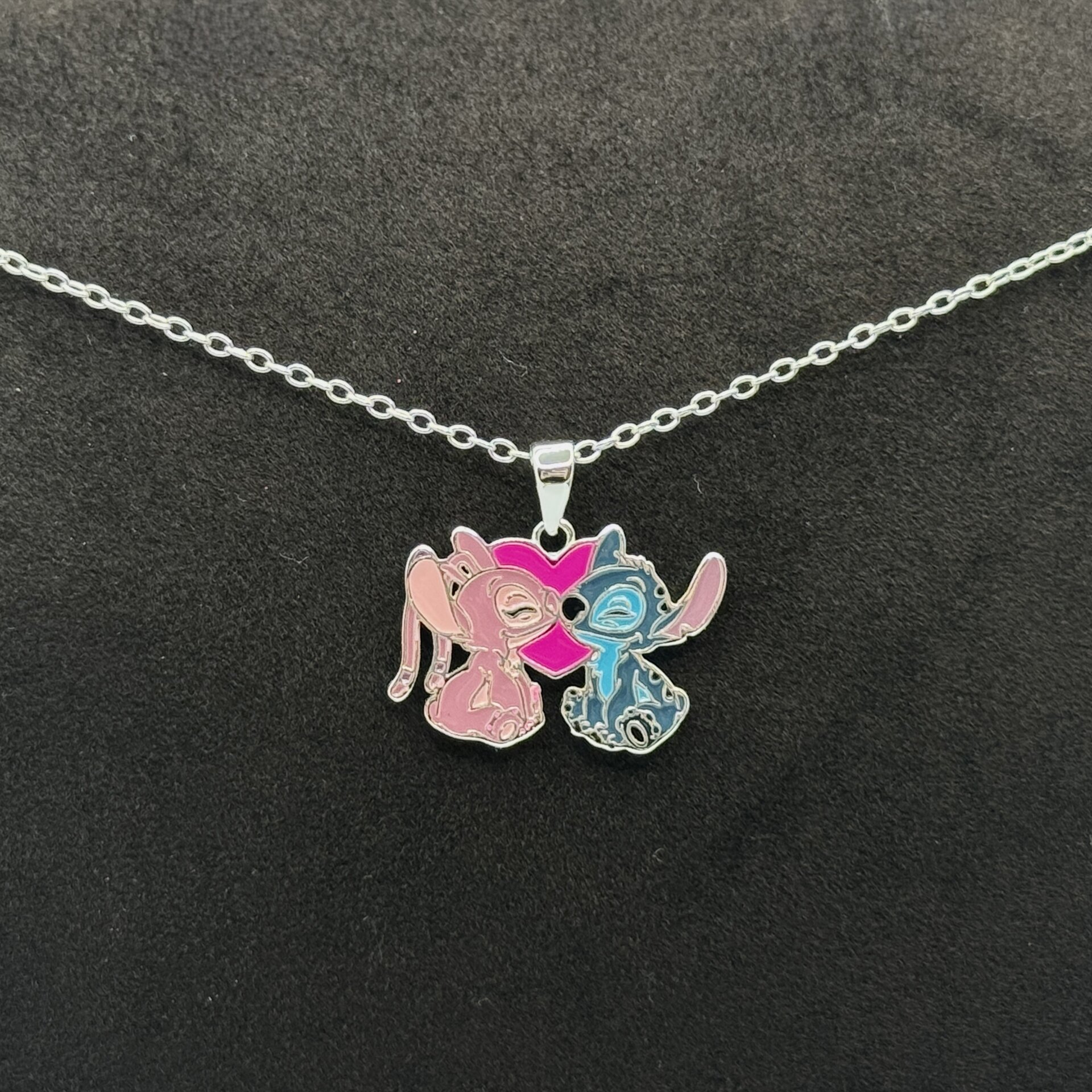 Collana Disney Stitch & Angel Argento Sterling Smaltato