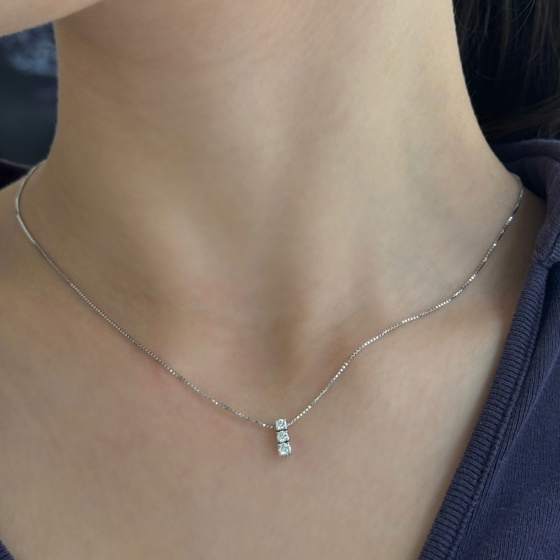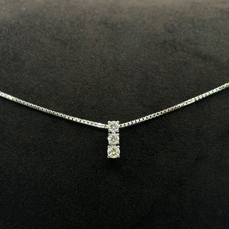 Collana Giorgio Visconti in oro bianco 18 kt con tre diamanti taglio brillante in scalatura. Eleganza, qualità e garanzia ufficiale.