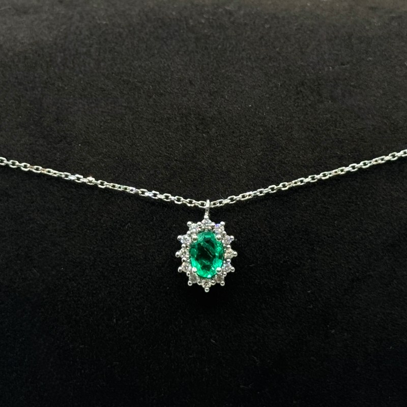 Collana Oro Bianco 18 kt Diamanti e Smeraldo