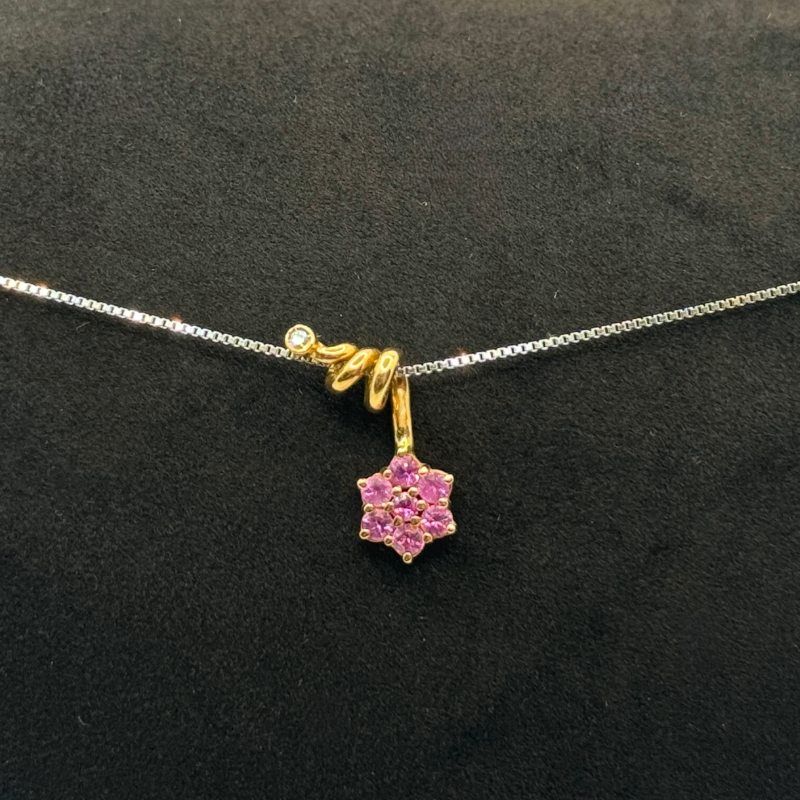 Collana Polello Oro Giallo 18 kt Diamante e Zaffiri Rosa