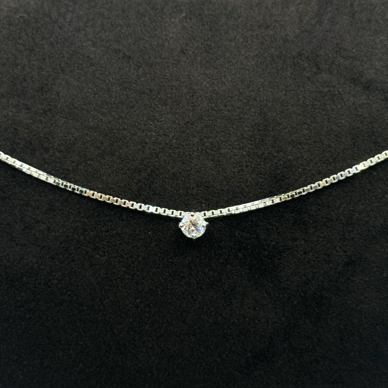 La catena di 40 cm si adagia con raffinatezza sul décolleté, mettendo in risalto la brillantezza del diamante con un tocco discreto e prezioso. Questo gioiello è perfetto da indossare ogni giorno come punto luce di stile, ma anche per impreziosire le occasioni più speciali.