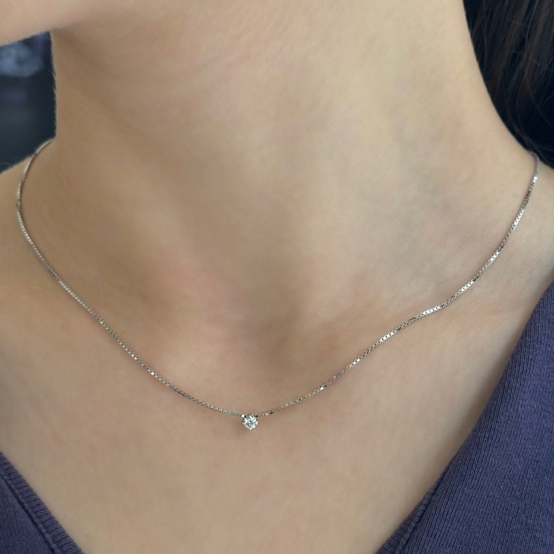 La catena in oro bianco da 40 cm avvolge delicatamente il décolleté, esaltando la brillantezza naturale del diamante. Perfetta da indossare ogni giorno o per le occasioni speciali, questa collana è un simbolo di raffinatezza e stile senza tempo.