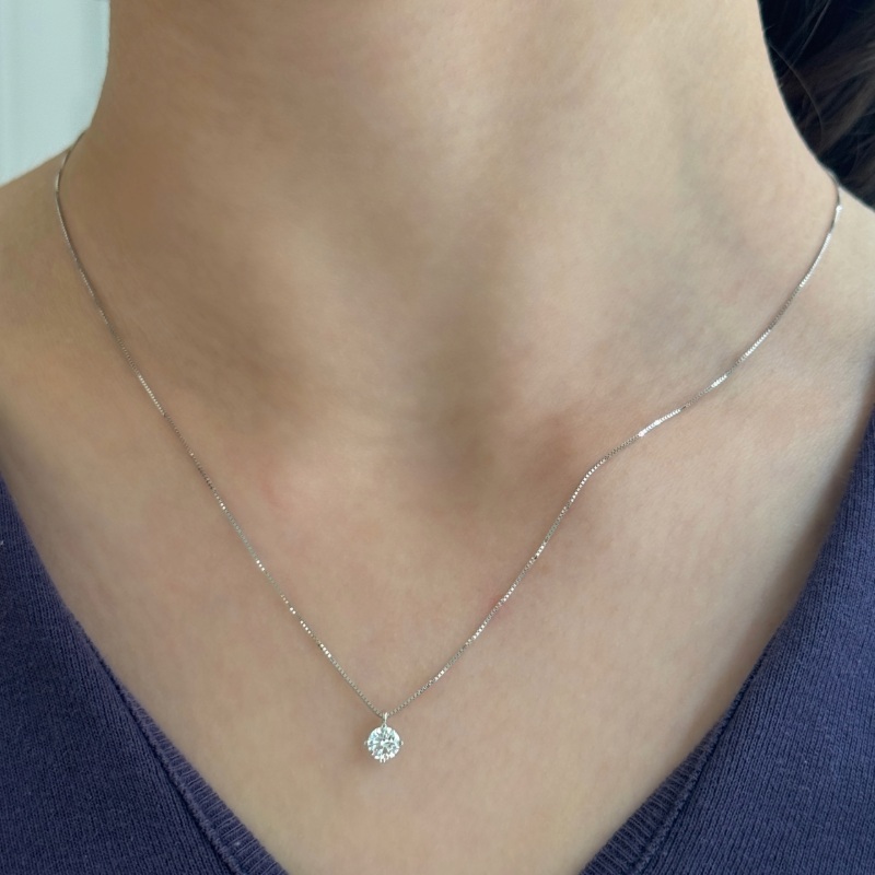 La Collana Punto Luce in oro bianco 18 kt è un classico intramontabile che unisce eleganza e luminosità. Il delicato ciondolo da 5 mm ospita un diamante taglio brillante da 0,45 ct, scelto per purezza e straordinaria brillantezza, capace di catturare la luce da ogni angolazione.