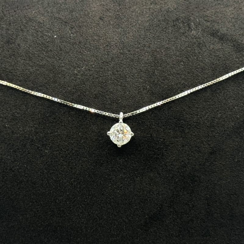 Collana Punto Luce in oro bianco 18 kt con diamante 0,45 ct. Lunghezza 44 cm, ciondolo 5 mm. Scatola e garanzia Gioielleria Fegadoli.