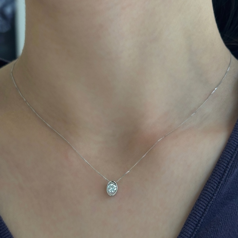 Collana Punto Luce Yukiko KCLD197 in oro bianco 18 kt con diamanti 0,40 ct H VVS. Ciondolo 8×6 mm, lunghezza 42 cm. Scatola e garanzia ufficiale inclusa.