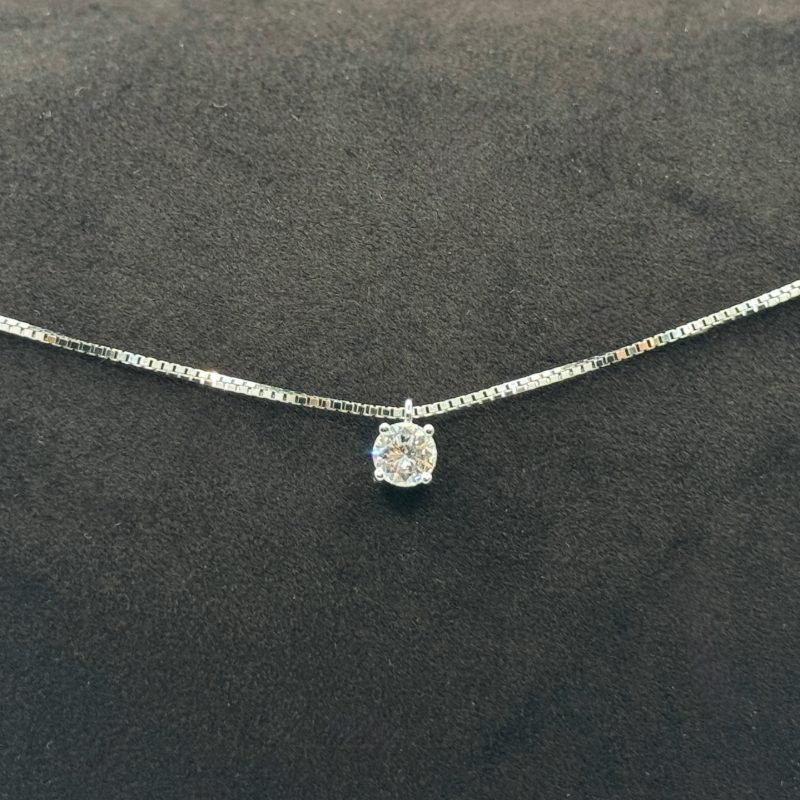 Collier Damiani Punto Luce 71089773 in oro bianco 18 Kt con diamante brillante 0,40 ct. Catena 43 cm con chiusura impreziosita da diamante. Certificato.