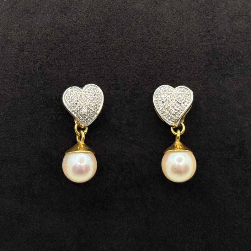 Orecchini Cuore Kiara Oro Bianco e Giallo 18 kt Diamanti e Perle
