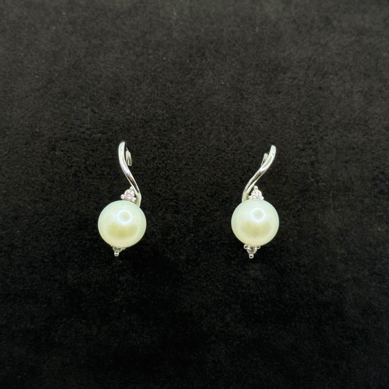 Orecchini in oro bianco 18 kt con perle da 7 mm e Swarovski. Design elegante con chiusura a monachella e garanzia Gioielleria Fegadoli.