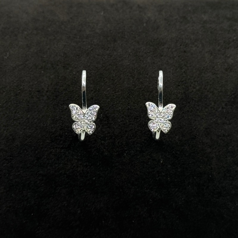 Orecchini pendenti farfalla in oro bianco 18 kt con Swarovski, 2,3 gr. Design elegante e simbolico, con scatola e garanzia Gioielleria Fegadoli.