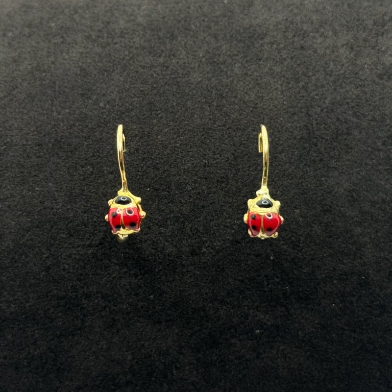 Orecchini Pendenti Coccinella Oro Giallo 18 kt Smaltati