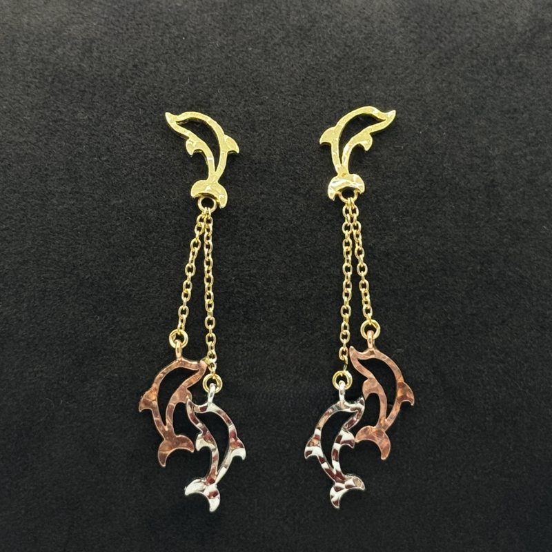 Orecchini Pendenti Delfini Oro Giallo, Rosé e Bianco 18 kt