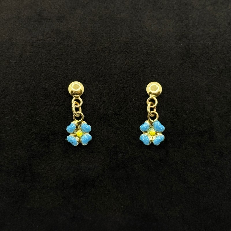 Orecchini Pendenti Fiore Oro Giallo 18 kt Smaltati