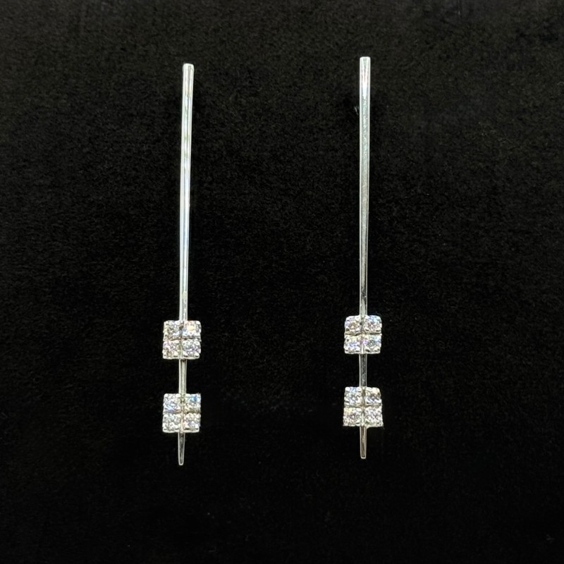 Orecchini pendenti in oro bianco 18 kt e Swarovski, 4,7 g di eleganza e brillantezza. Design da 46 mm con chiusura a farfallina. Garanzia Gioielleria Fegadoli.