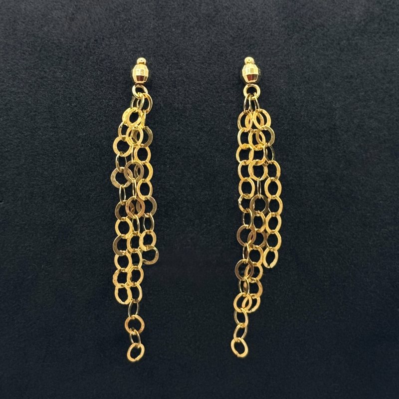 Orecchini pendenti in oro giallo 18 kt dal design elegante e leggero. Un gioiello raffinato e luminoso, perfetto per ogni occasione.