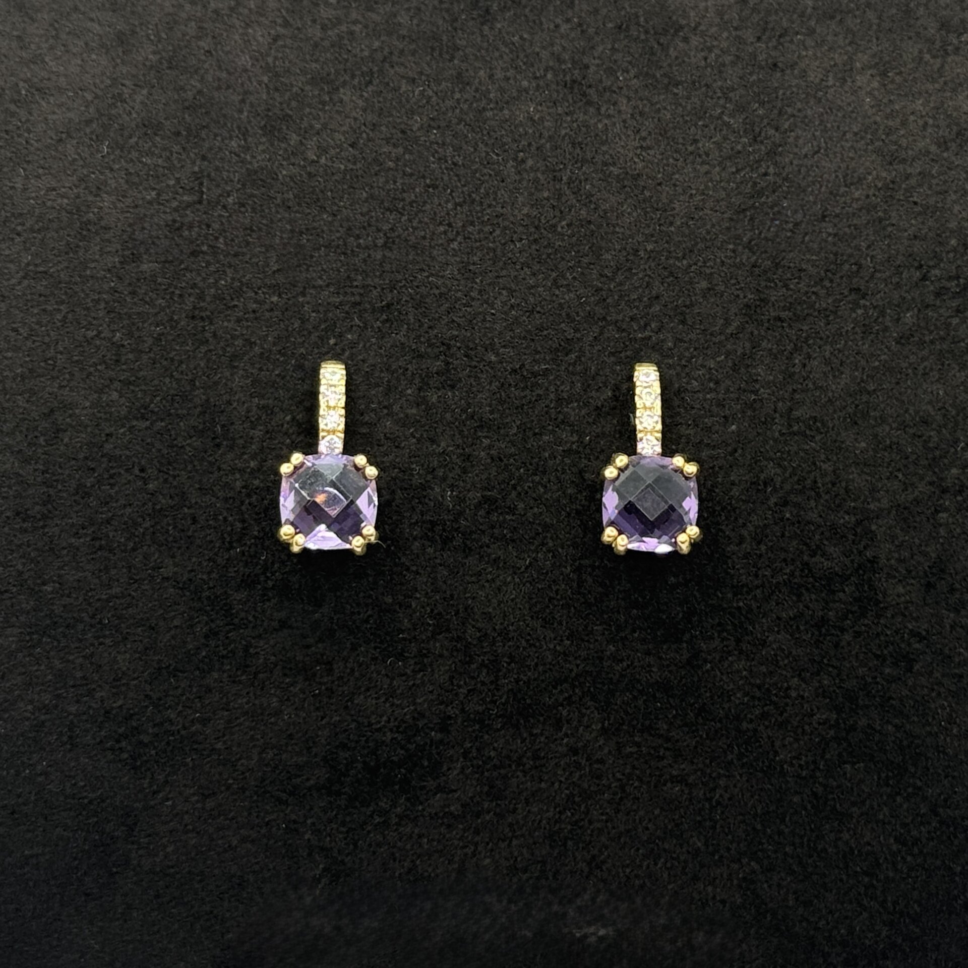 Orecchini Stroili in oro giallo 9 kt con ametista e Swarovski. Eleganti, luminosi e raffinati. Completi di confezione e certificazione ufficiale Stroili Gioielli.