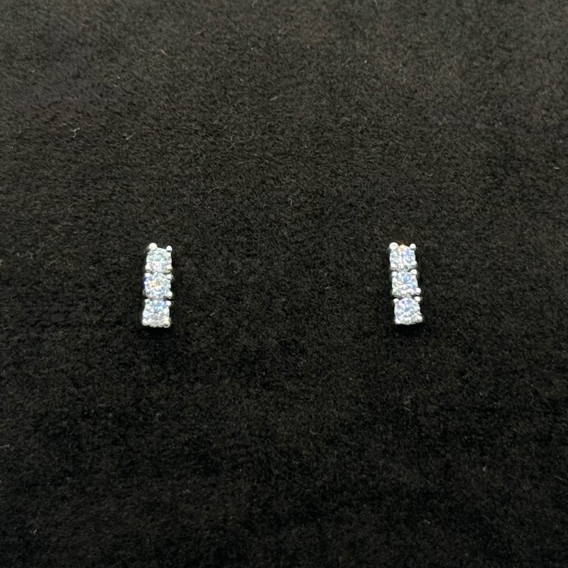 Orecchini Trilogi in oro bianco 18 kt con Swarovski, eleganti e raffinati, peso 1,2 gr, diametro 7×3 mm con chiusura a farfallina.