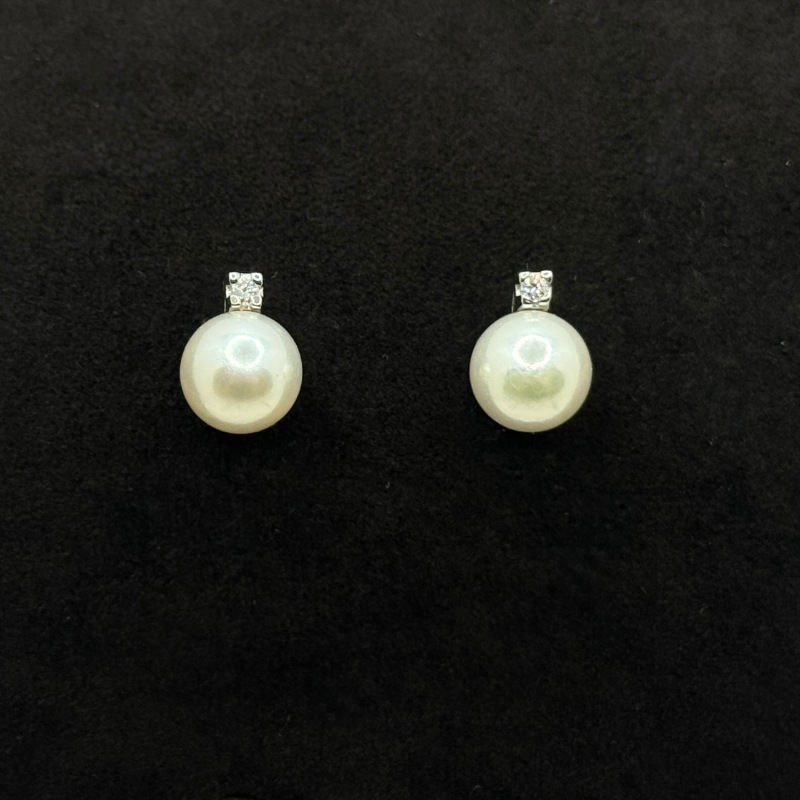 Orecchini Yukiko in oro bianco 18 kt con perle da 8 mm e diamanti 0,06 ct H. Eleganza e luce in 3,6 g. Garanzia ufficiale Yukiko.