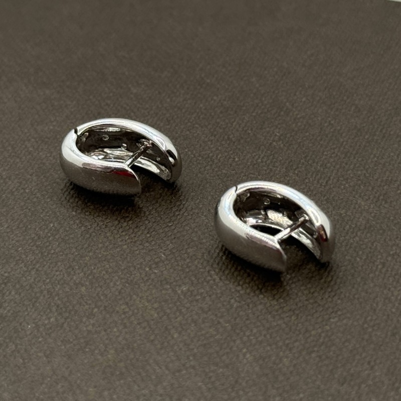 Orecchini a mezzaluna in oro bianco 18 kt e diamanti 0,14 ct. Eleganza e luminosità in 6,6 g d’oro, con chiusura a scatto. Garanzia Gioielleria Fegadoli.