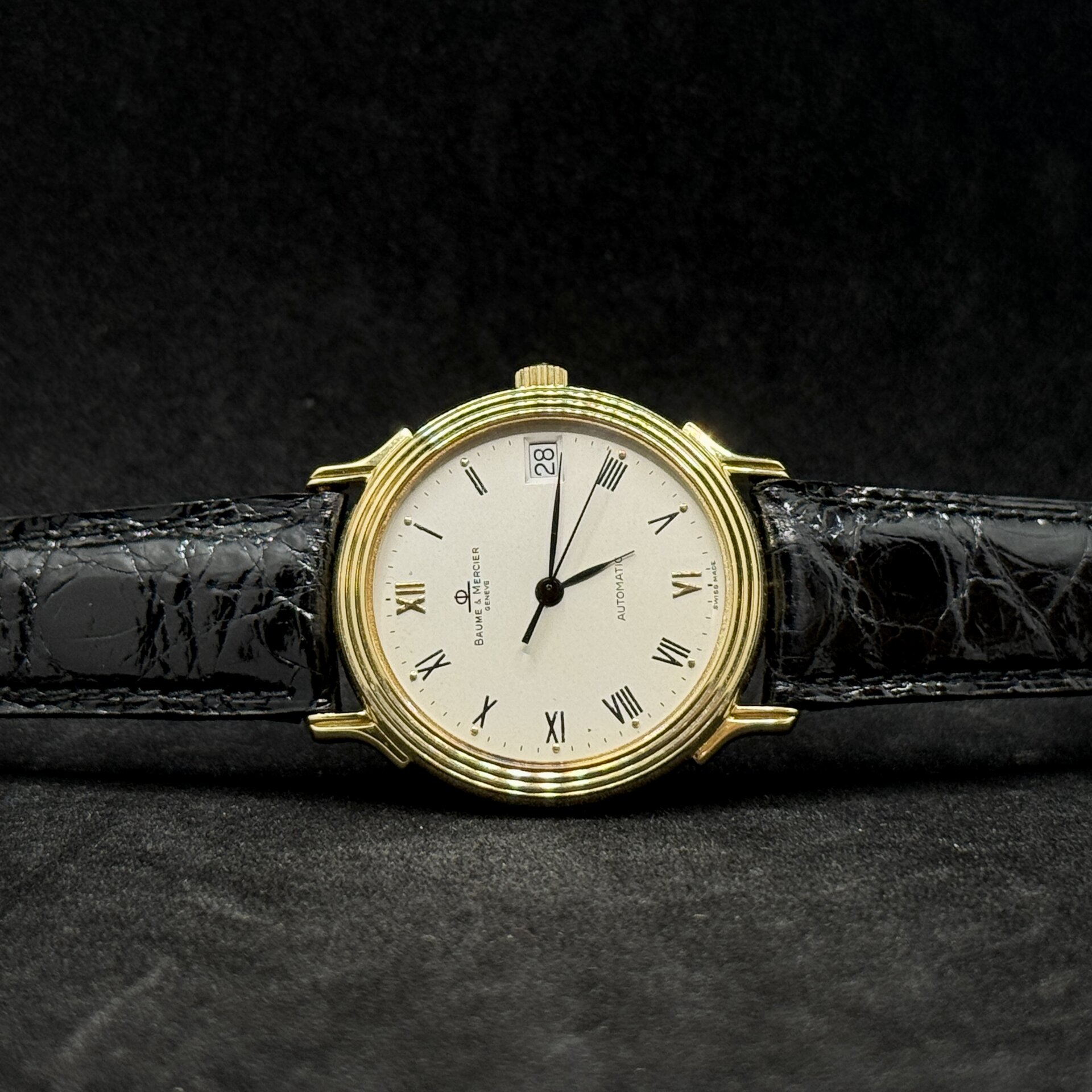 Il Baume & Mercier Automatic in oro giallo 18 kt è un segnatempo di classe, pensato per chi apprezza l’eleganza senza tempo e la qualità dell’alta orologeria svizzera.