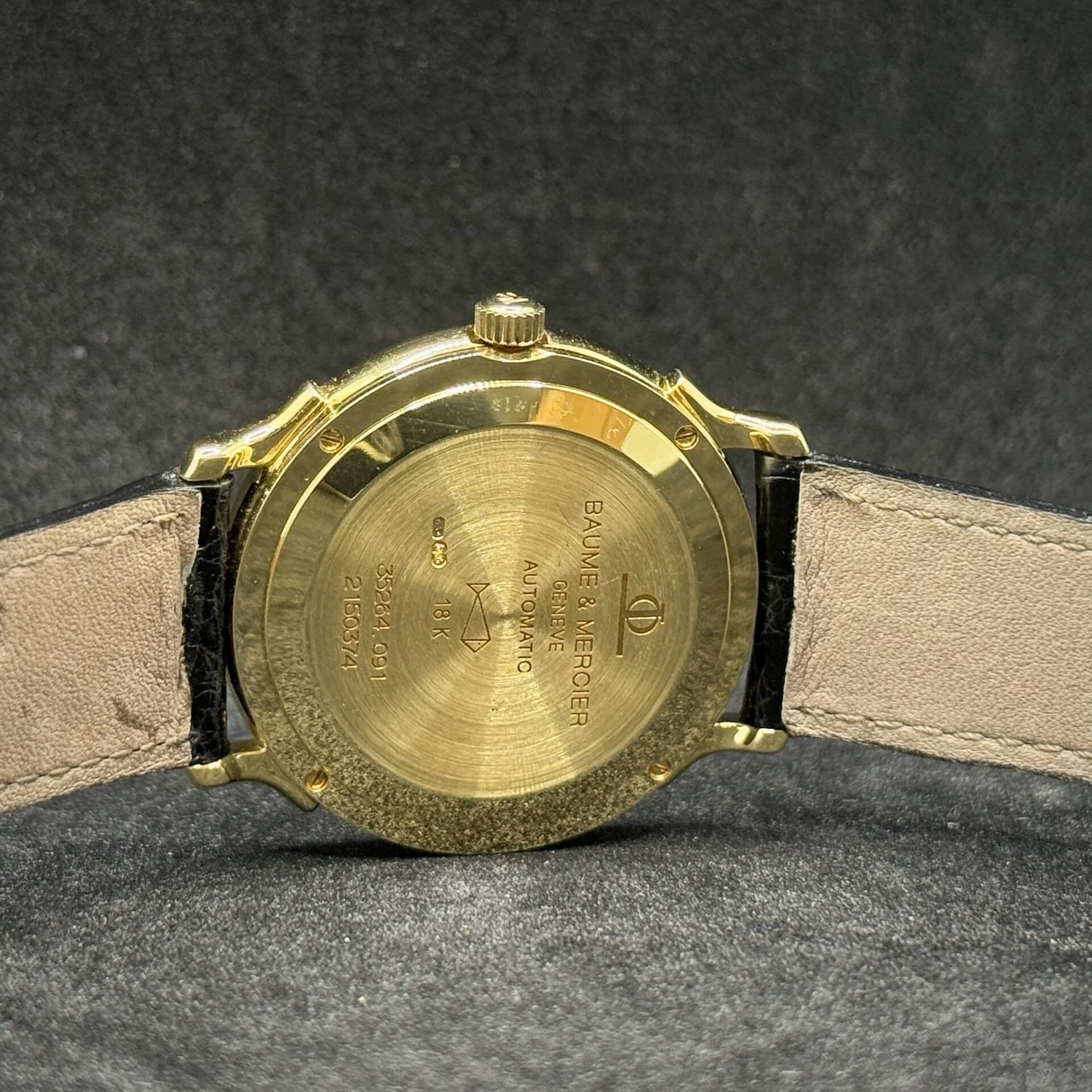 Baume & Mercier Automatic in oro giallo 18 kt, movimento BM11892, quadrante argento, cinturino in pelle di coccodrillo nero, vetro zaffiro. Con garanzia del nostro laboratorio 24 mesi.