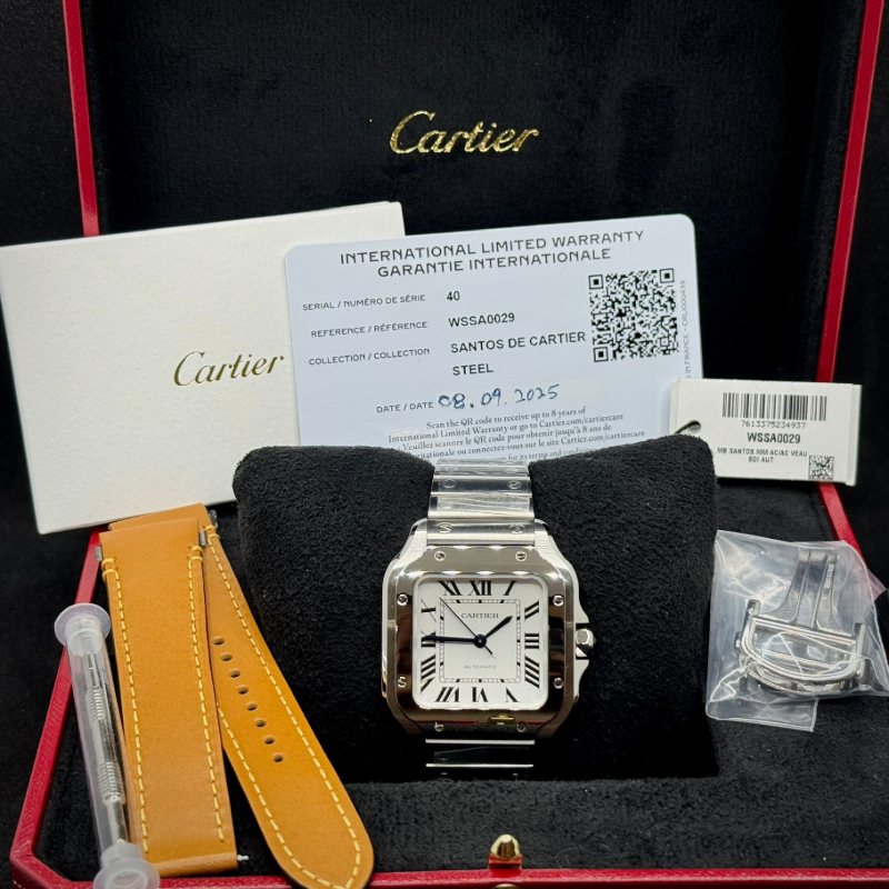 Cartier Santos De Cartier Ref. WSSA0029 in acciaio, calibro automatico 1847 MC, vetro zaffiro e chiusura déployante. Icona di eleganza e precisione.