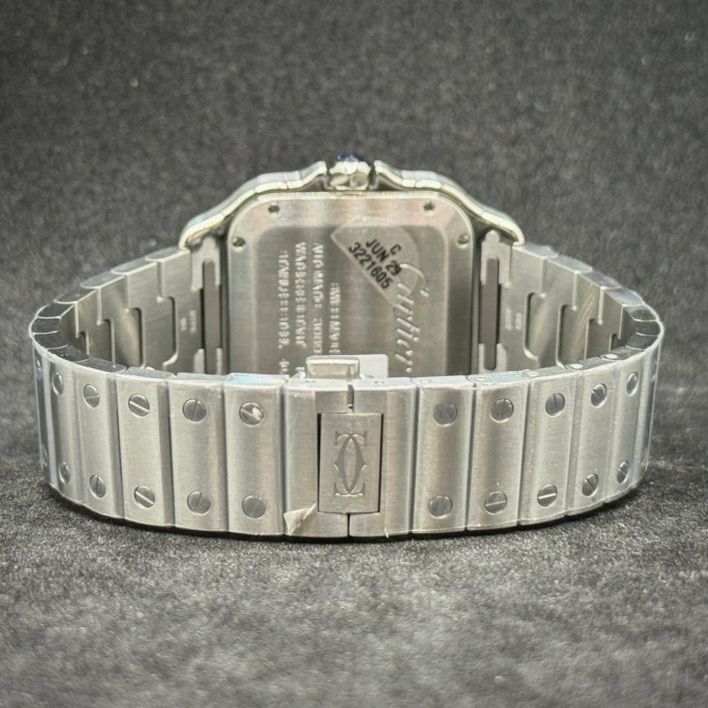 Il bracciale in acciaio con doppia chiusura déployante garantisce comfort e sicurezza, adattandosi perfettamente al polso. Orologio nuovo e completo di scatola e garanzia ufficiale Cartier.
