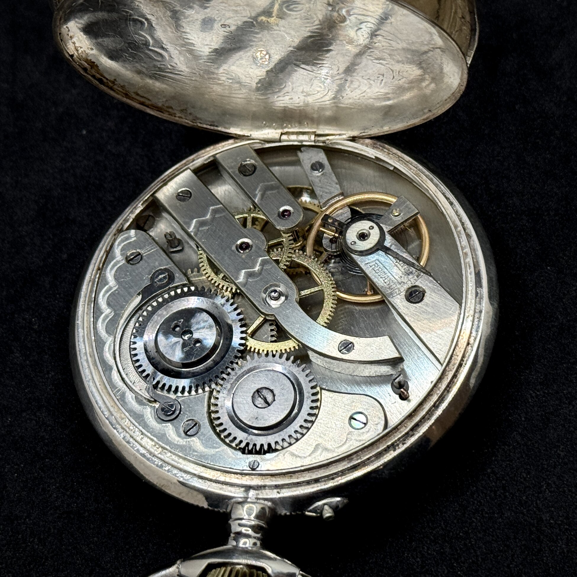 Orologio da tasca in argento, completamente originale e restaurato. Carica manuale, cassa 60 mm, vetro in cristallo. Garanzia 24 mesi, foto reali, disponibilità immediata.