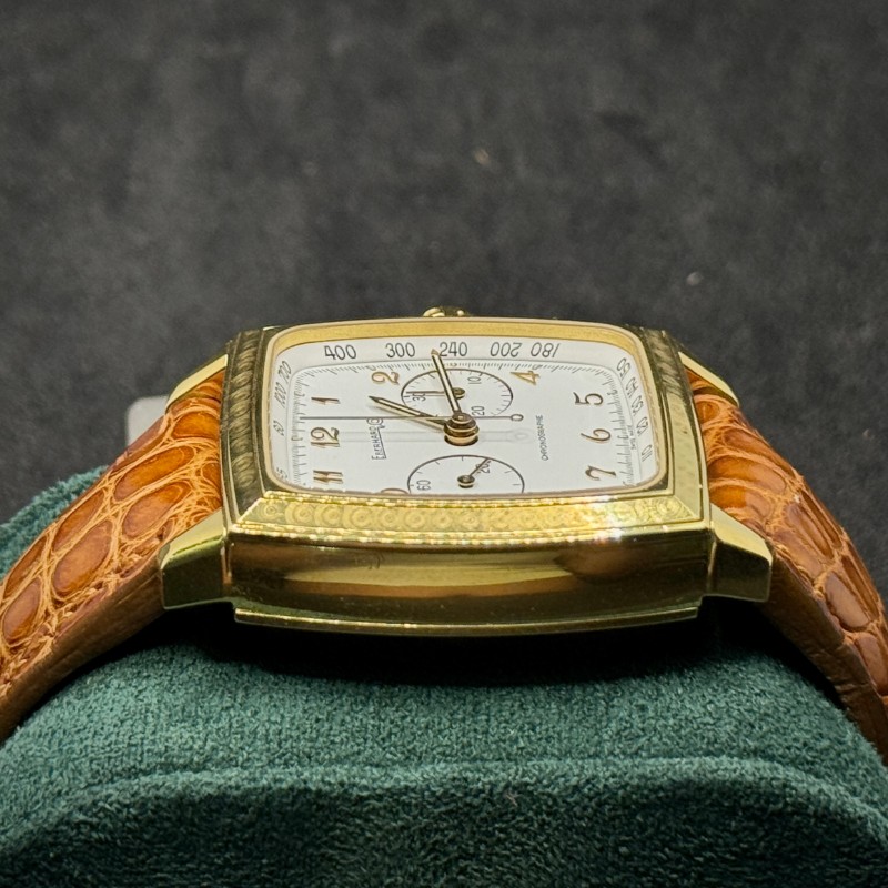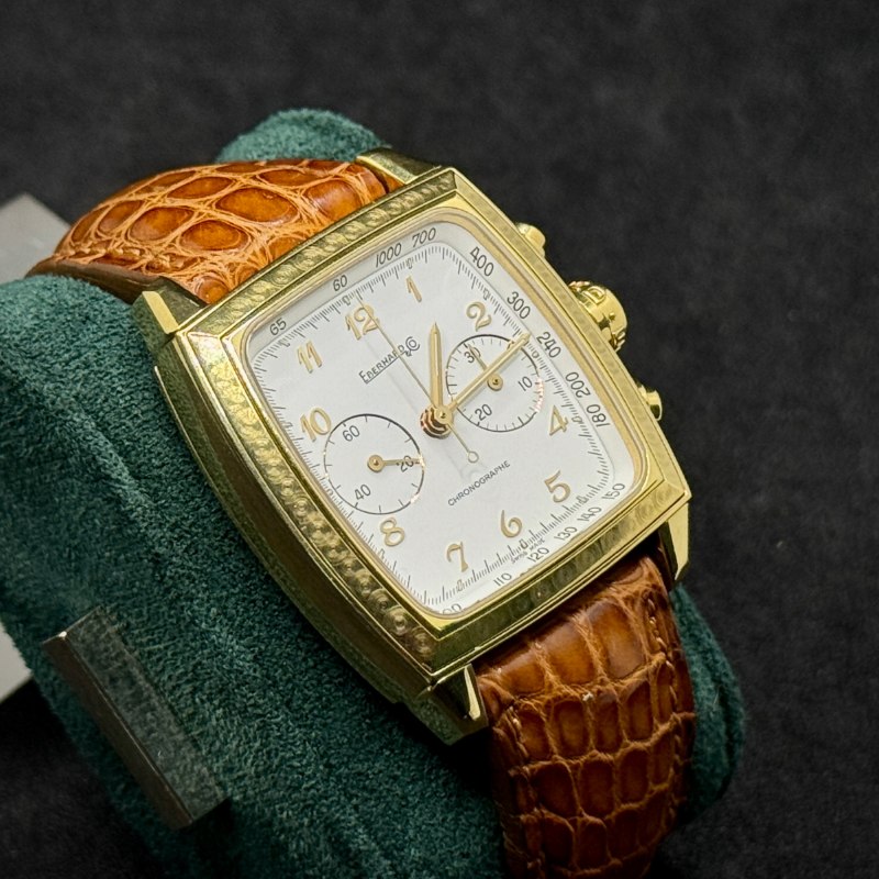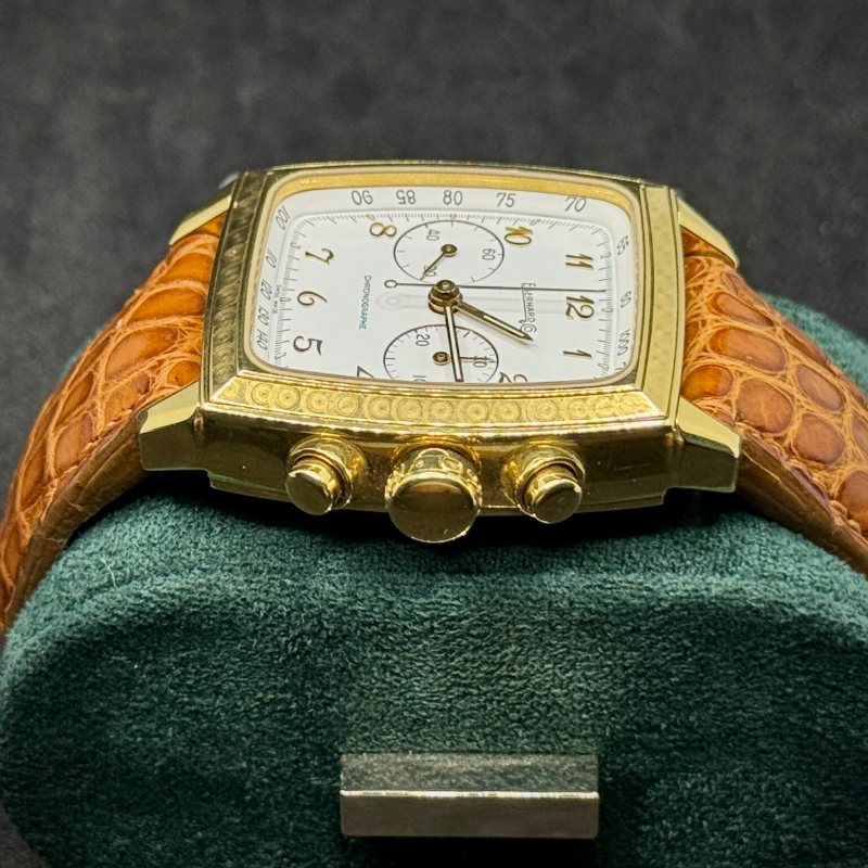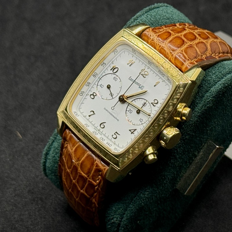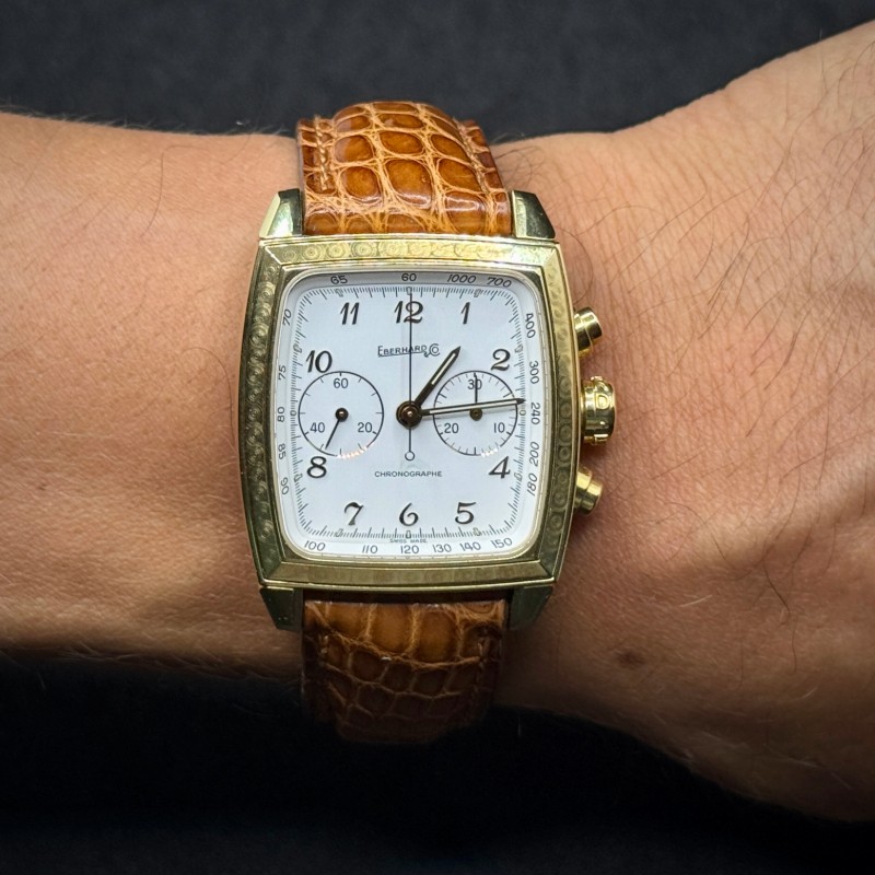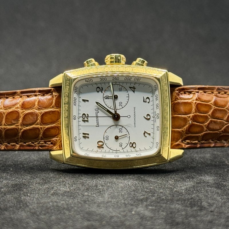 Perché non si tratta di un semplice orologio, ma di un pezzo da collezione che racchiude esclusività, prestigio e artigianalità. Coniuga la raffinatezza dell’oro giallo alla solidità del marchio Eberhard, offrendo un segnatempo capace di distinguersi in qualsiasi occasione. È la scelta perfetta per chi desidera indossare un orologio di lusso raro e significativo.