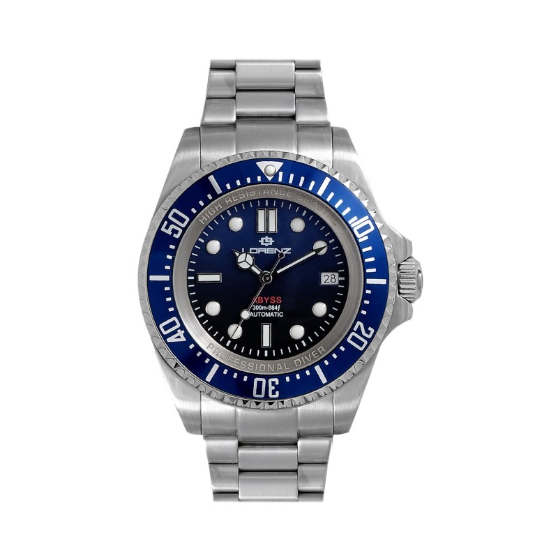 Orologio Lorenz Abyss Automatico 030036AA, acciaio 43 mm, automatico NH35, ghiera unidirezionale e bracciale in acciaio. Diver 30 ATM con data.
