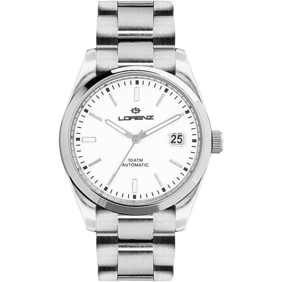 Orologio Lorenz Automatico 030134AA, acciaio 39 mm, quadrante bianco, movimento automatico Miyota 8215, data e bracciale in acciaio. 10 ATM.