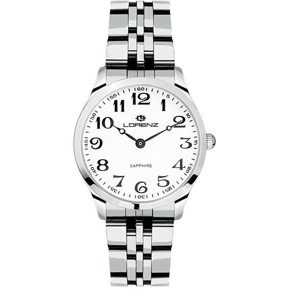 Orologio Lorenz Sapphire 030116AA, acciaio 32 mm, quarzo solo tempo, vetro zaffiro e quadrante bianco. Elegante e affidabile, 5 ATM.