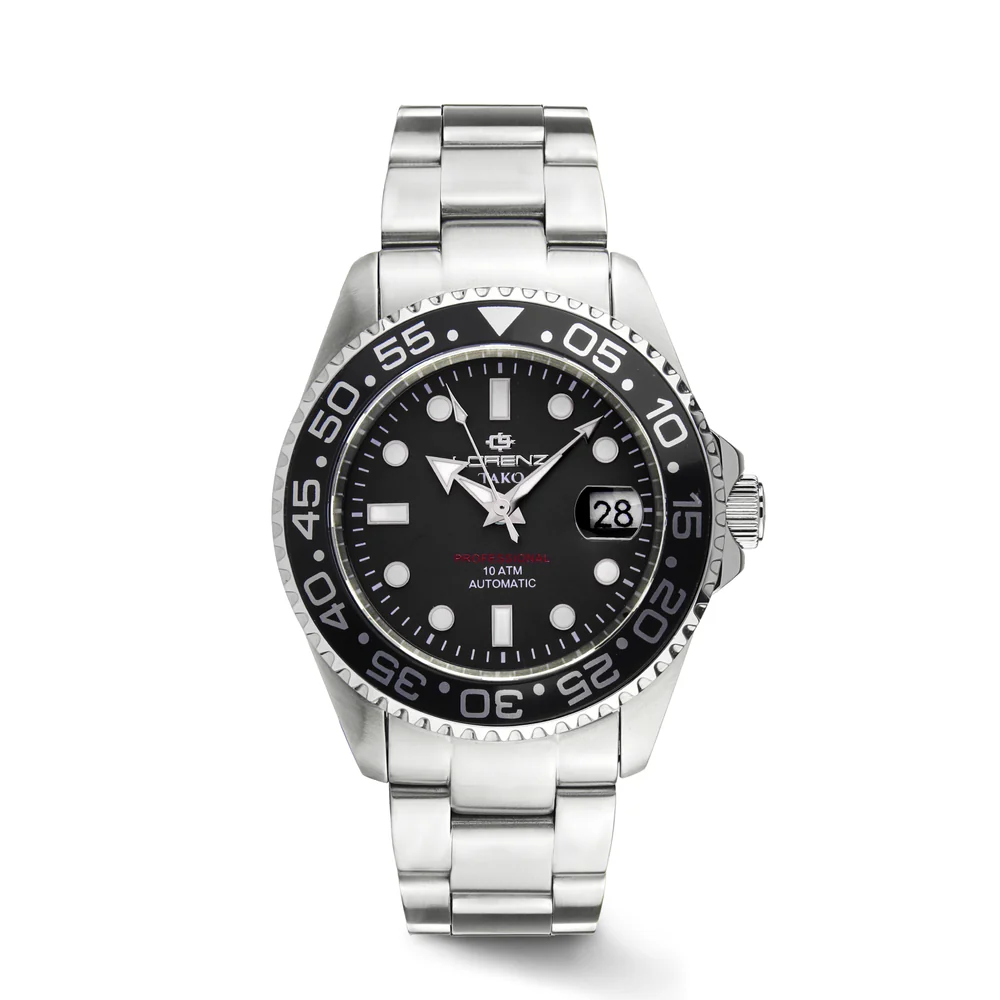 Orologio Lorenz Tako Professional 030254AA, automatico NH35, acciaio 316L da 43 mm, vetro zaffiro e lunetta unidirezionale. 10 ATM con data.