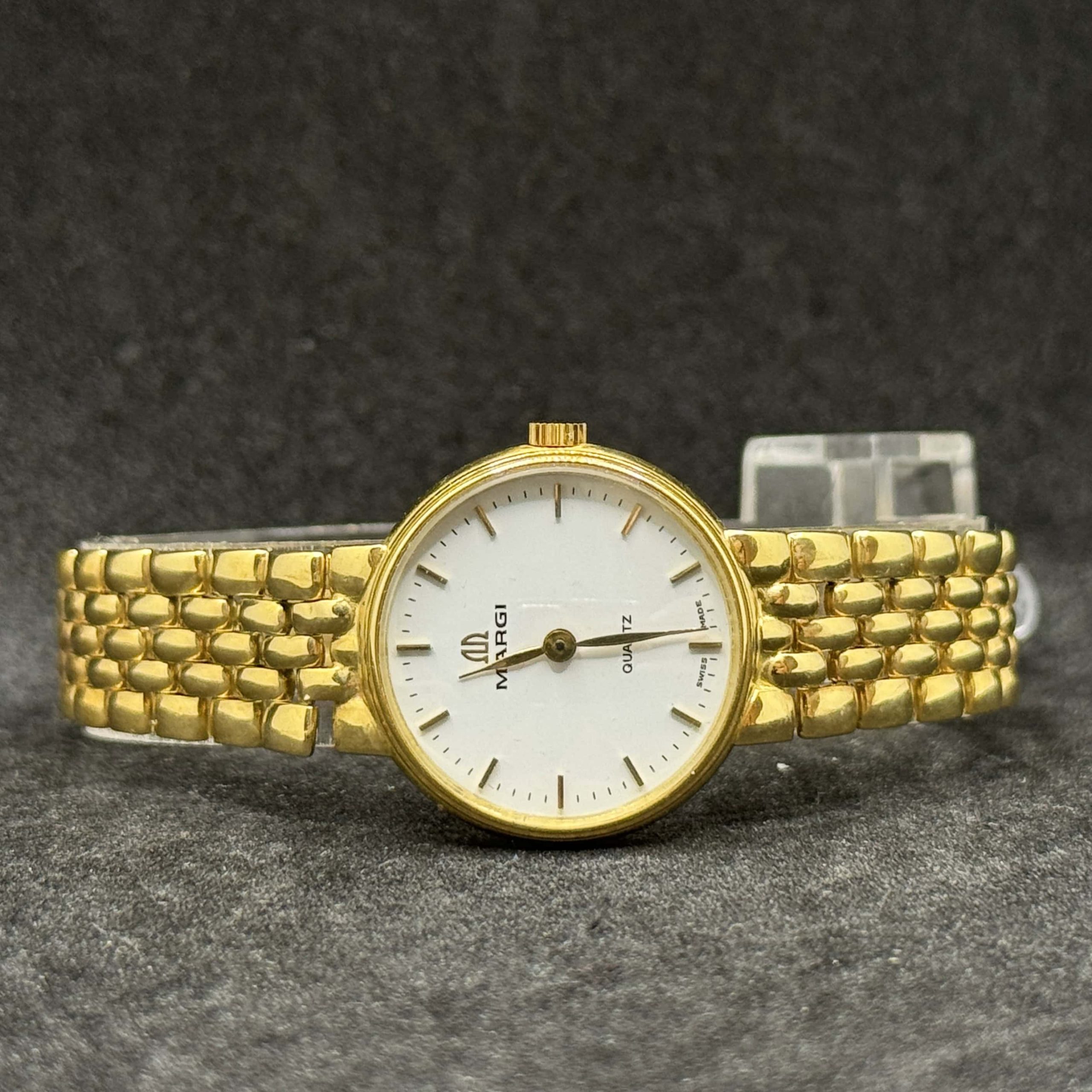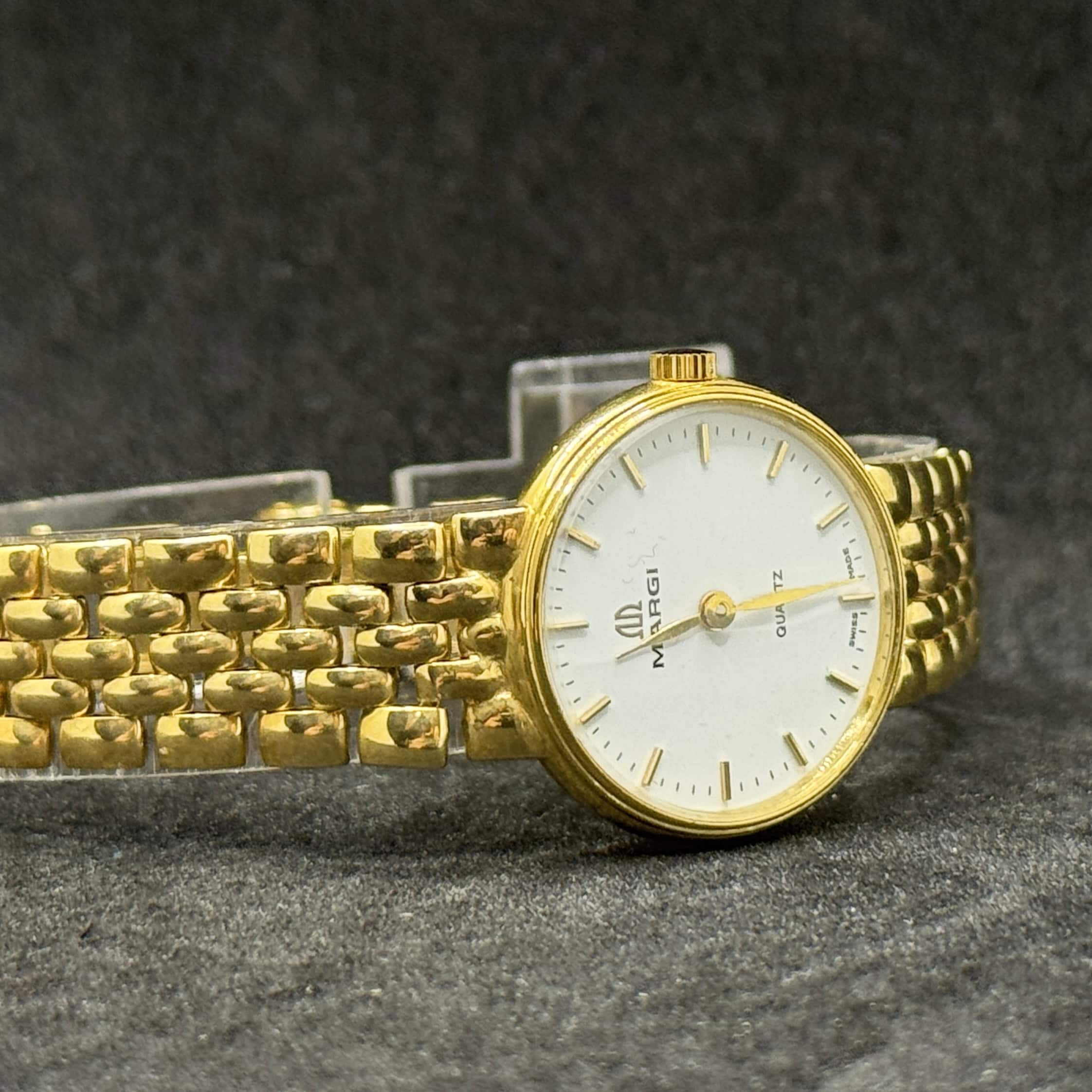 Orologio Margi in oro 18 kt con movimento quarzo e vetro zaffiro. Segnatempo elegante in condizioni nuove con garanzia 24 mesi.
