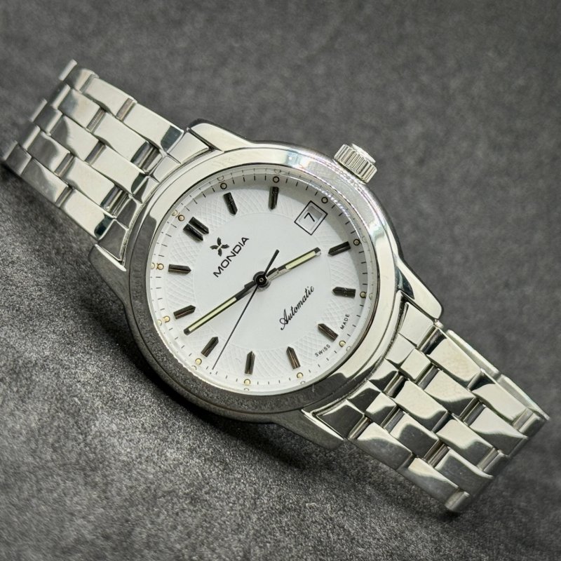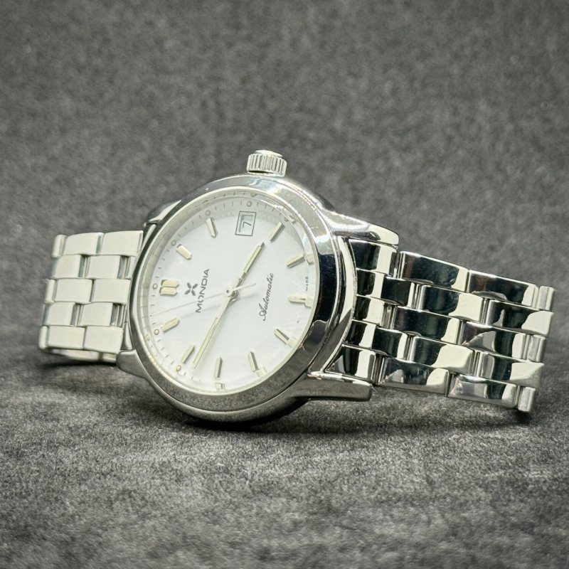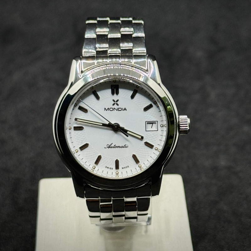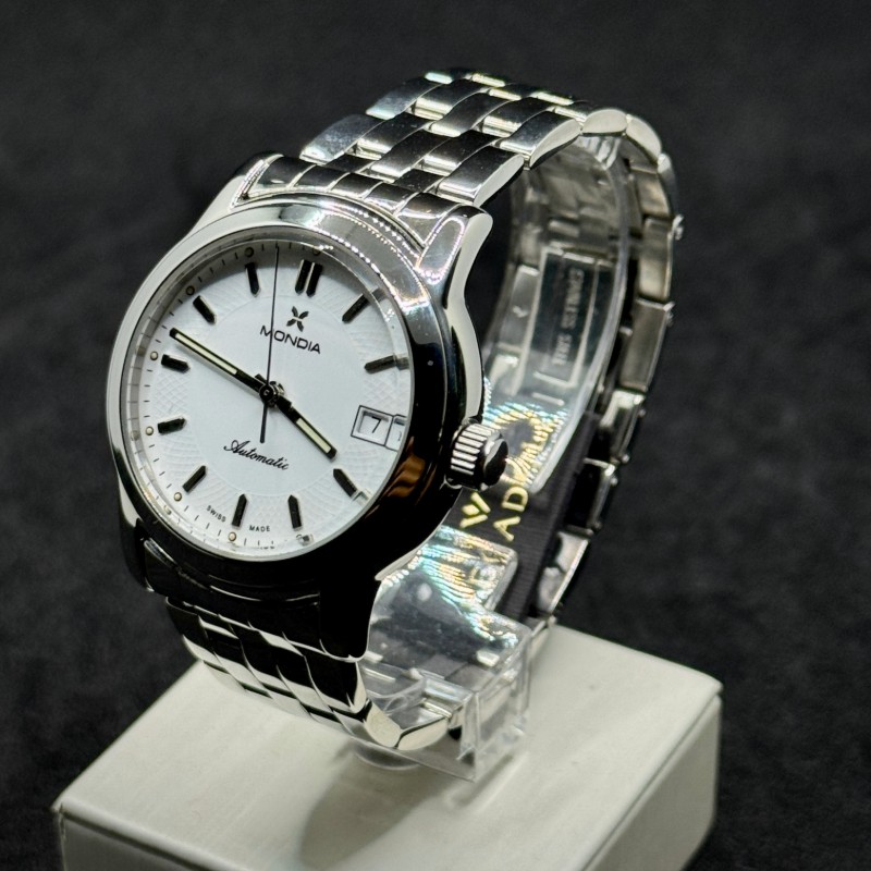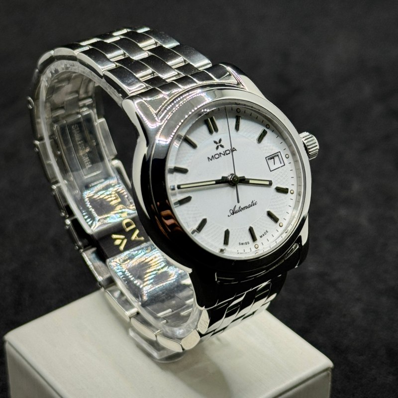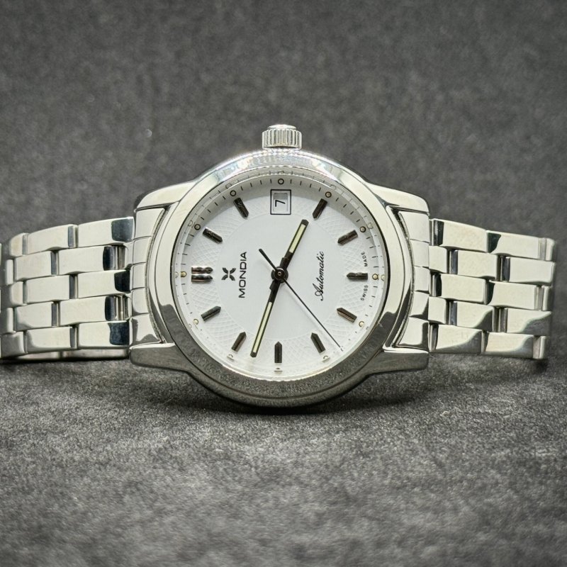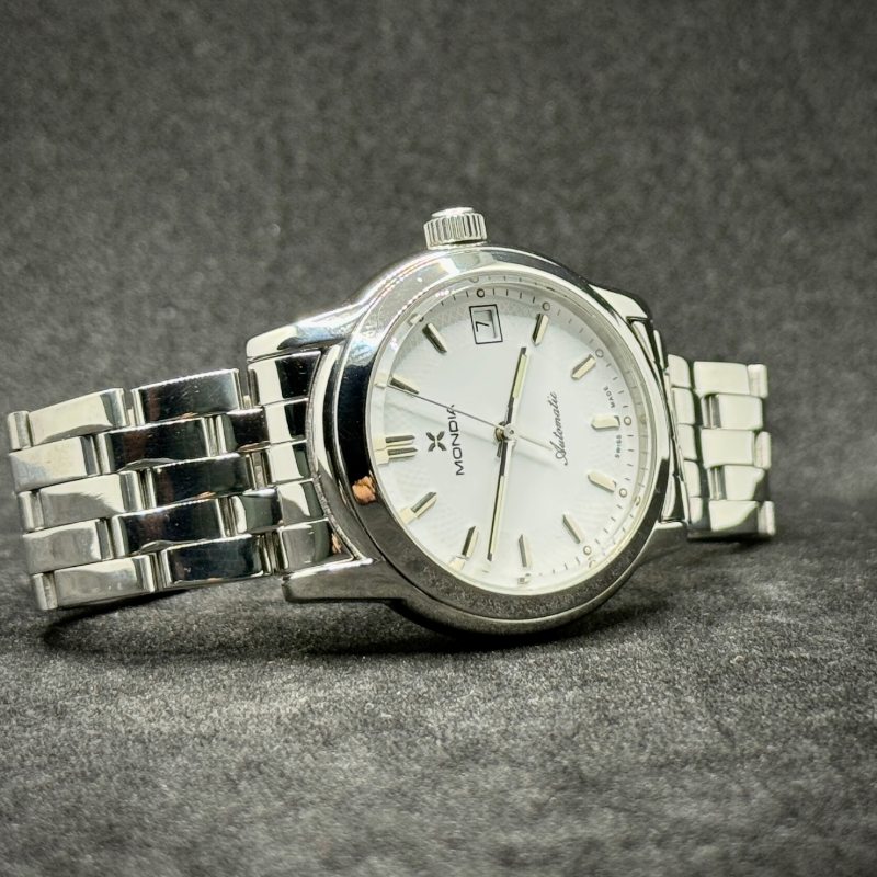 Mondia Automatic anni ’80 in acciaio con movimento ETA 2824-2. Restaurato, con vetro zaffiro e garanzia 24 mesi. Stile vintage e precisione svizzera.