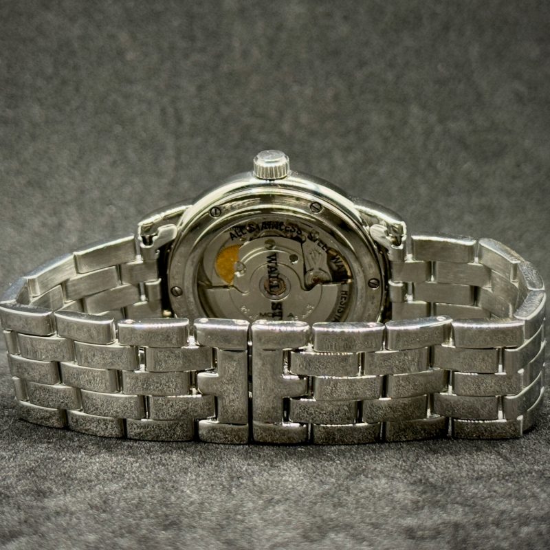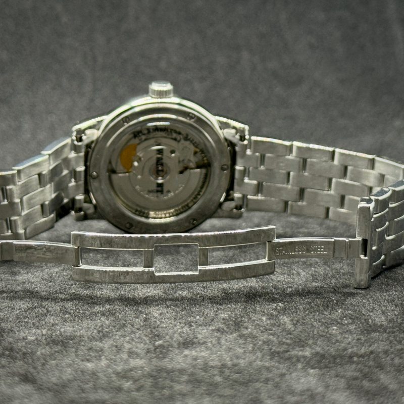 La cassa in acciaio da 36 mm, dal profilo lucido e satinato, custodisce un movimento automatico ETA 2824-2, uno dei calibri più apprezzati per precisione, robustezza e durata nel tempo. Il vetro zaffiro protegge il quadrante, garantendo resistenza ai graffi e nitidezza assoluta nella lettura dell’ora e della data. La corona a vite e il bracciale in acciaio completano un look sobrio ma di grande personalità, ideale sia per un uso quotidiano che per le occasioni eleganti.