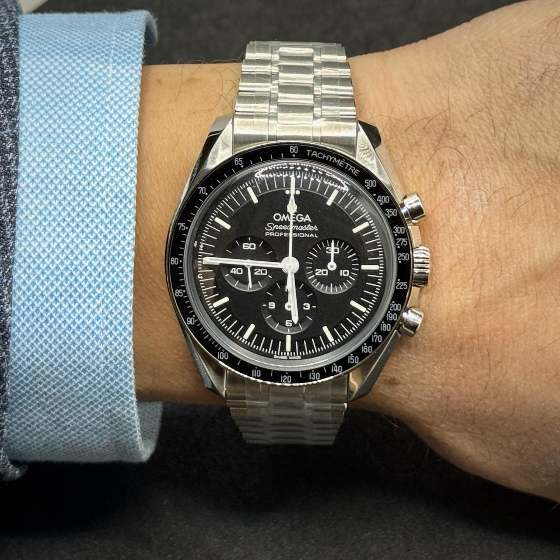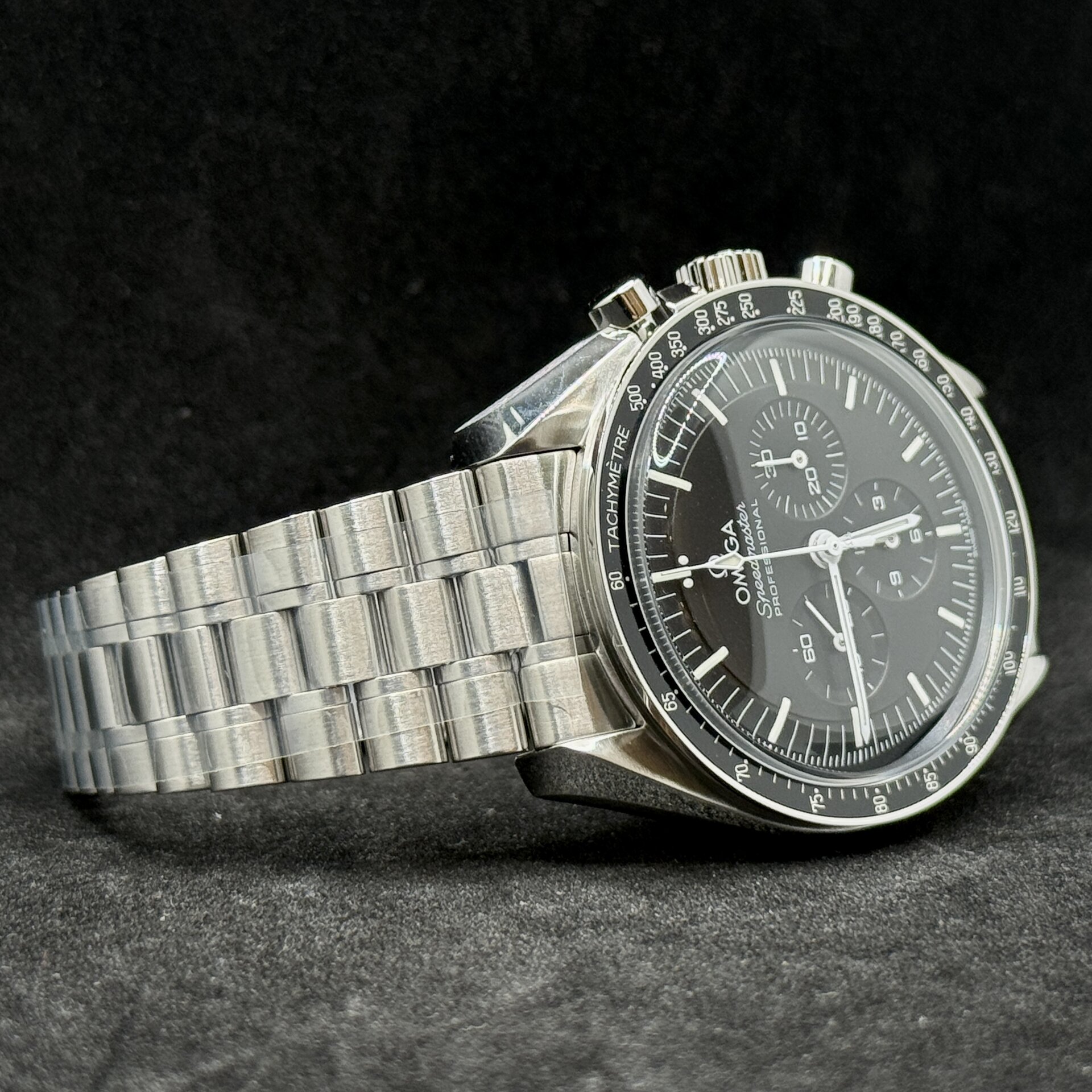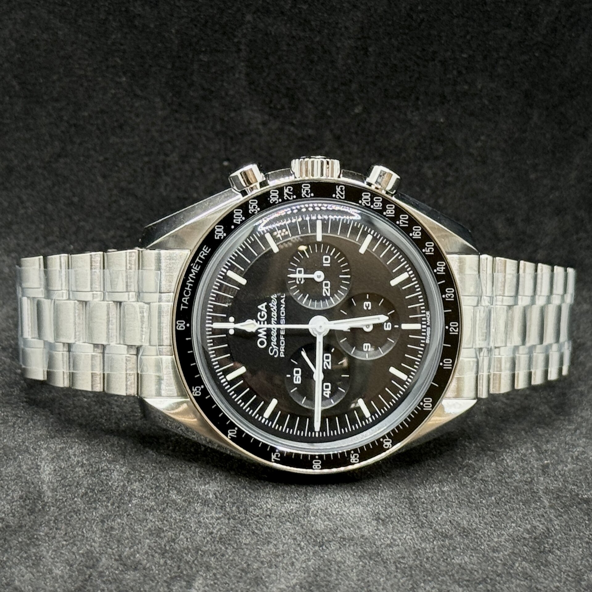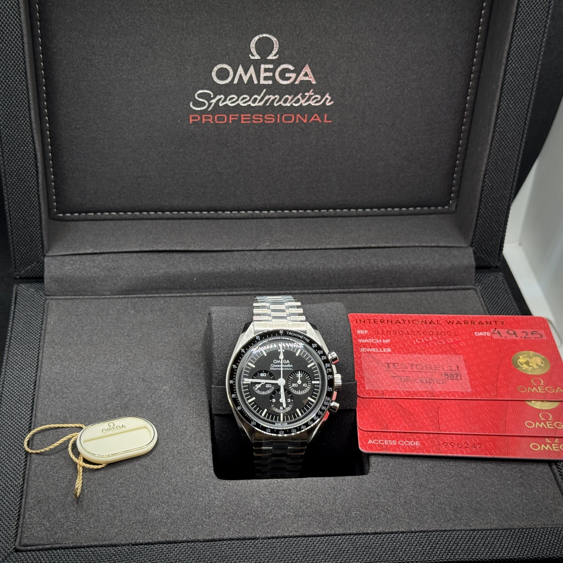 Omega Speedmaster Moonwatch nuovo, ref. 310.30.42.50.01.001. Acciaio 42 mm, carica manuale Lemania 1873, vetro plexiglas. Con scatola e garanzia Omega 2025.