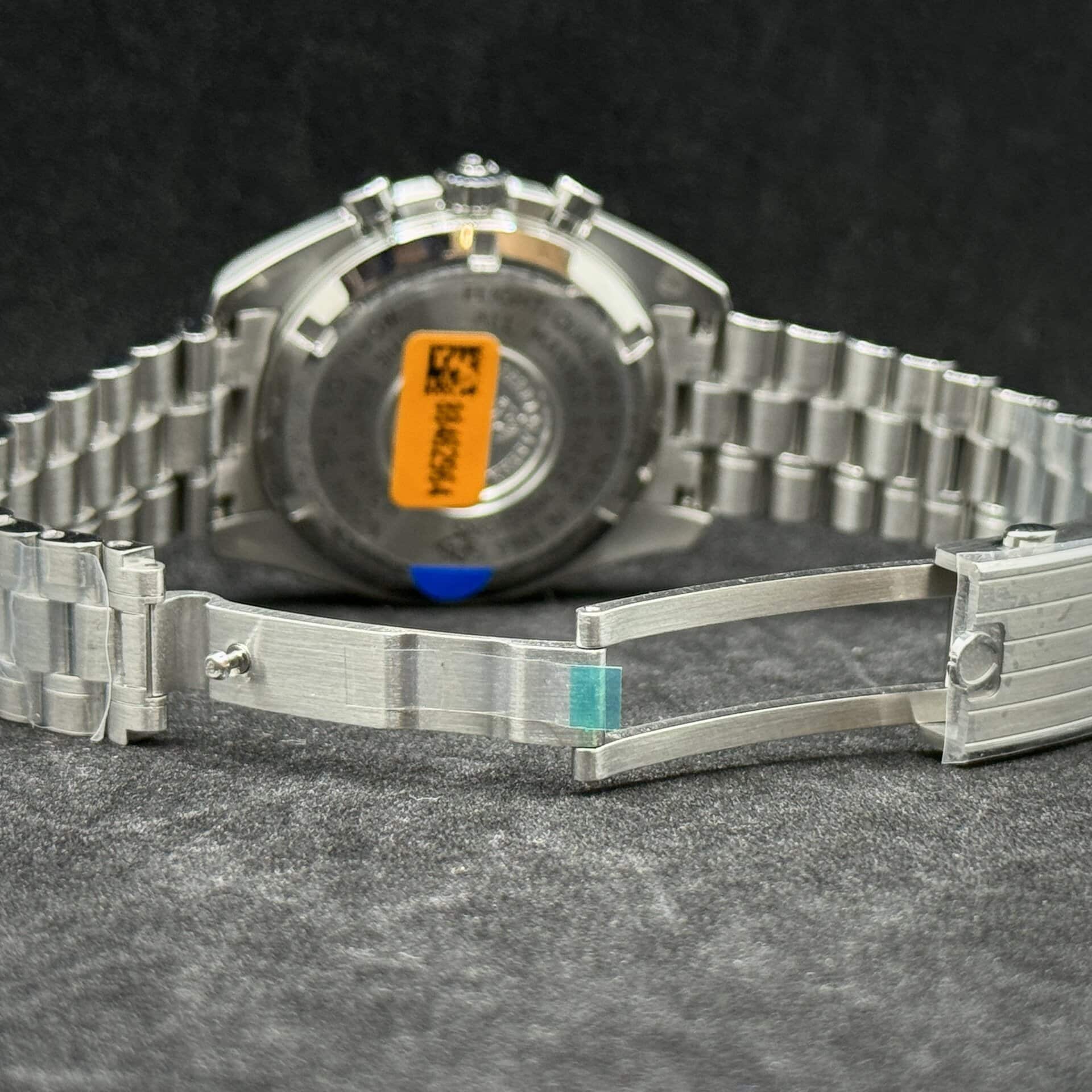 Il bracciale in acciaio satinato e lucido garantisce comfort, solidità e una vestibilità eccellente, mentre la resistenza all’acqua di 3 ATM lo rende adatto all’uso quotidiano. Le funzioni includono tempo, cronografo e tachimetro, rendendolo non solo un’icona estetica, ma anche uno strumento tecnico completo.