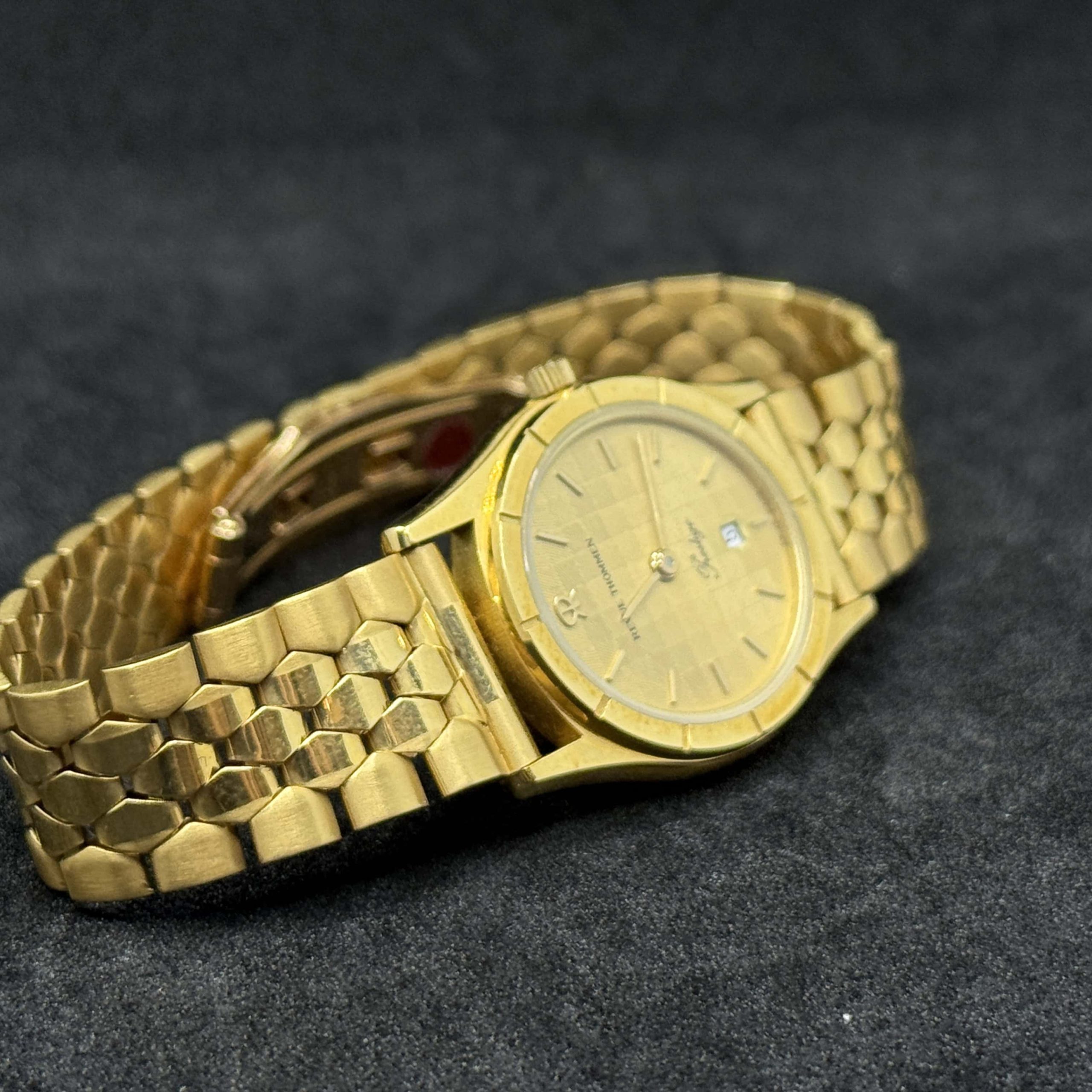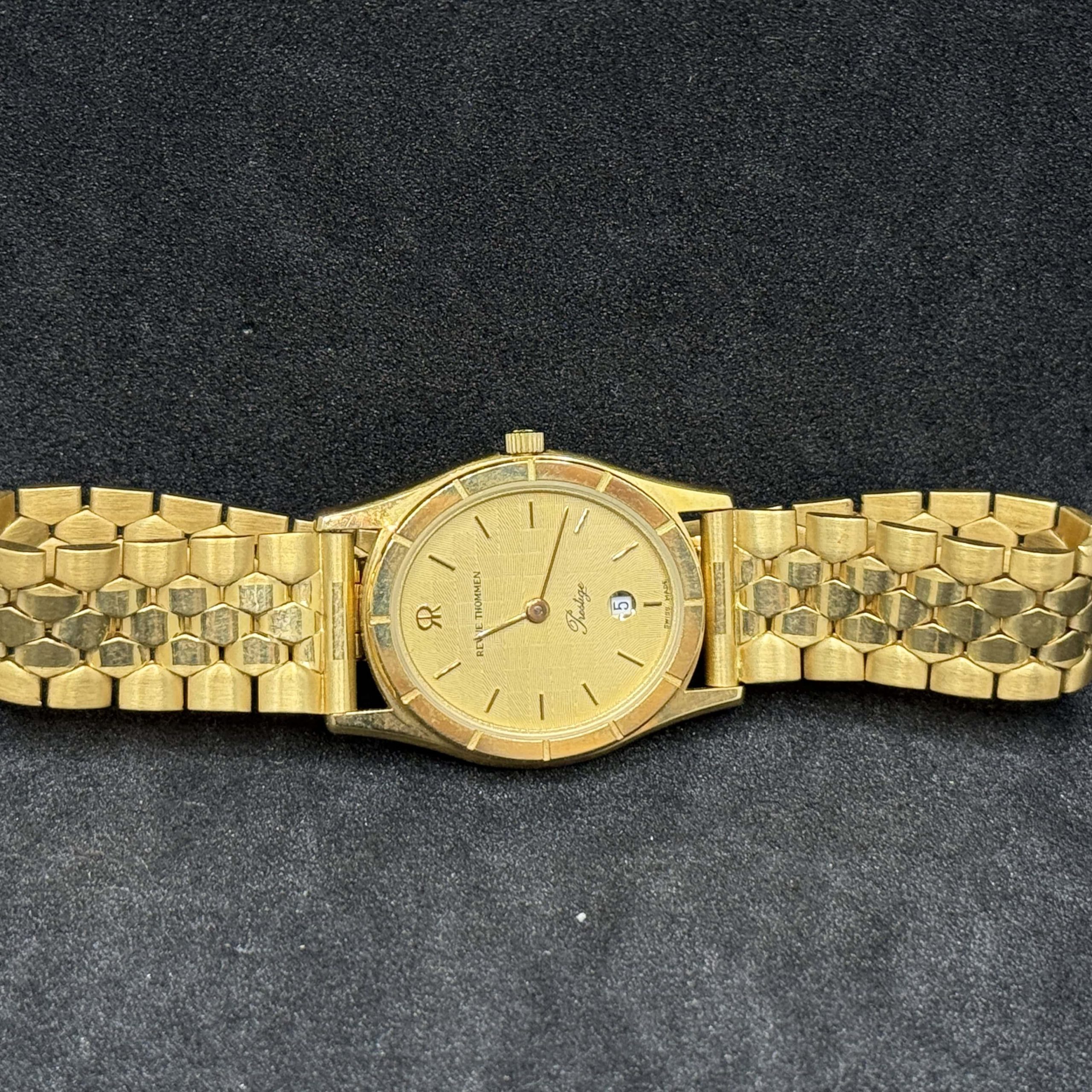 Orologio Revue Thommen oro 18 kt con movimento quarzo, vetro zaffiro e funzione data. Segnatempo elegante in condizioni nuove con garanzia 24 mesi.