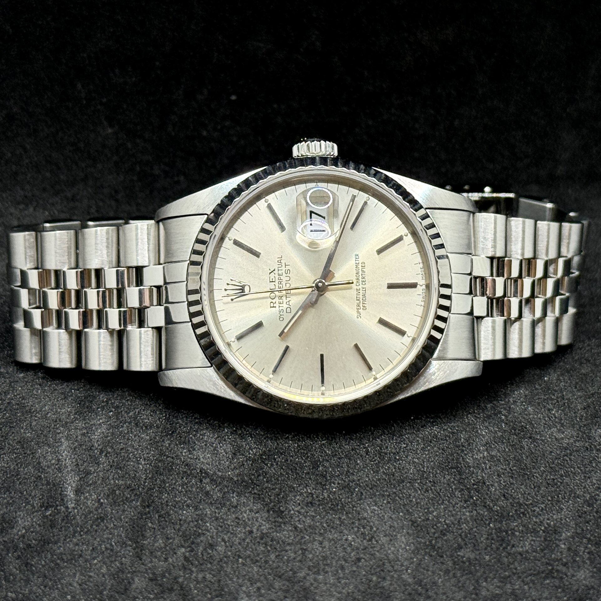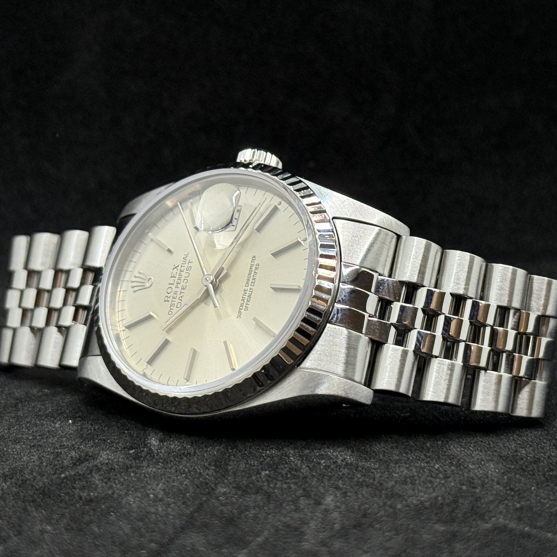 Rolex Datejust 16234 in eccellenti condizioni, acciaio e oro bianco, calibro 3135, vetro zaffiro. Garanzia ufficiale Rolex + 24 mesi, foto reali, disponibilità immediata.