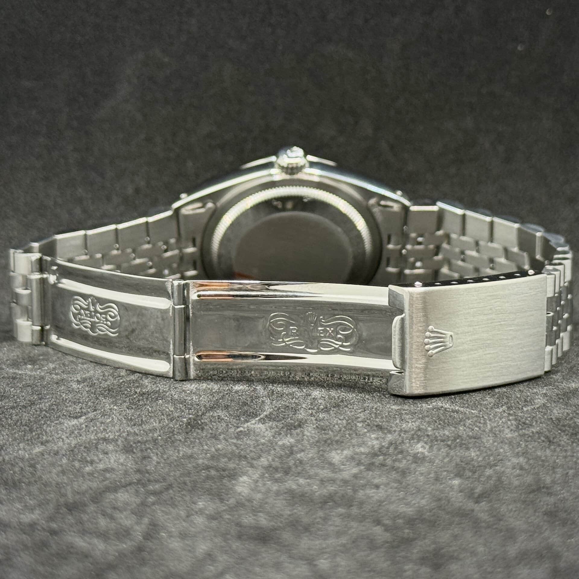 La cassa da 36 mm, realizzata in acciaio lucido e satinato, è abbinata a una prestigiosa ghiera in oro bianco, una combinazione che esalta la brillantezza dell’orologio mantenendo un’estetica elegante e raffinata. Il movimento meccanico Rolex Calibro 3135, uno dei più affidabili e longevi della casa coronata, garantisce precisione e prestazioni eccellenti nel tempo.