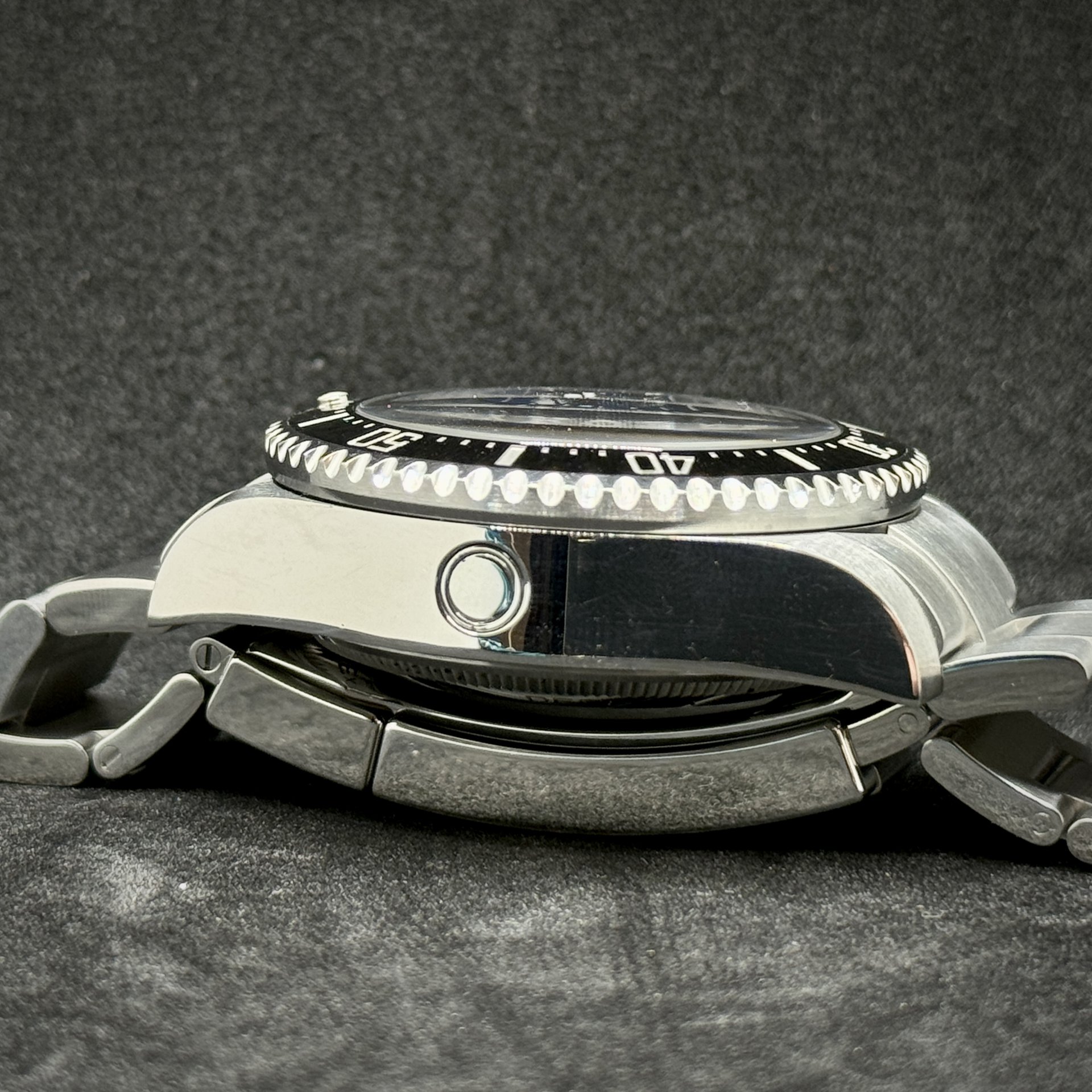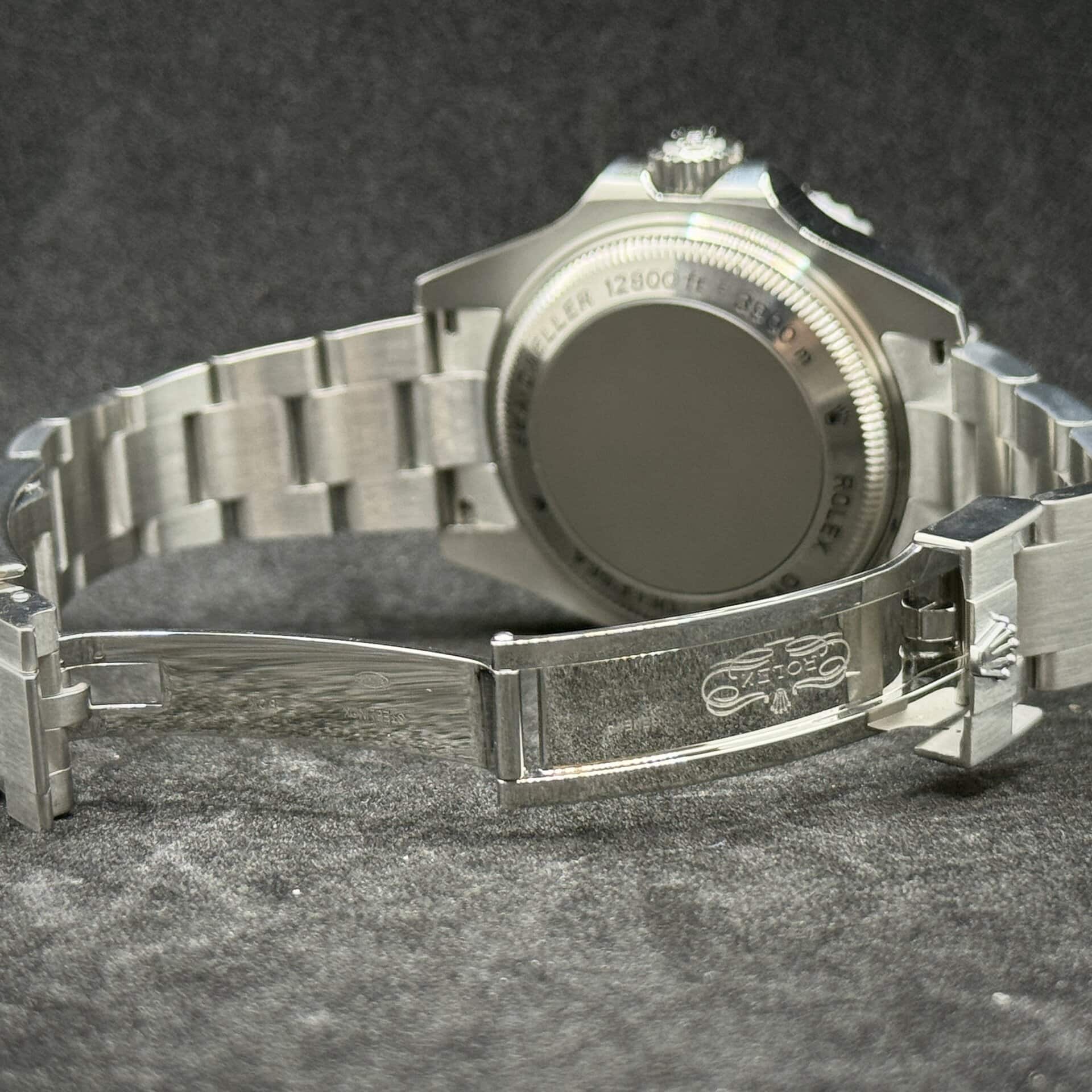 La cassa da 44 mm in acciaio lucido e satinato, unita alla ghiera girevole in ceramica, offre una presenza imponente ma equilibrata, progettata per resistere alle profondità più estreme. La corona a vite e il vetro zaffiro garantiscono robustezza e affidabilità in ogni condizione. Il bracciale Oyster, anch’esso in acciaio lucido e satinato, mantiene l’identità estetica della gamma professionale Rolex.