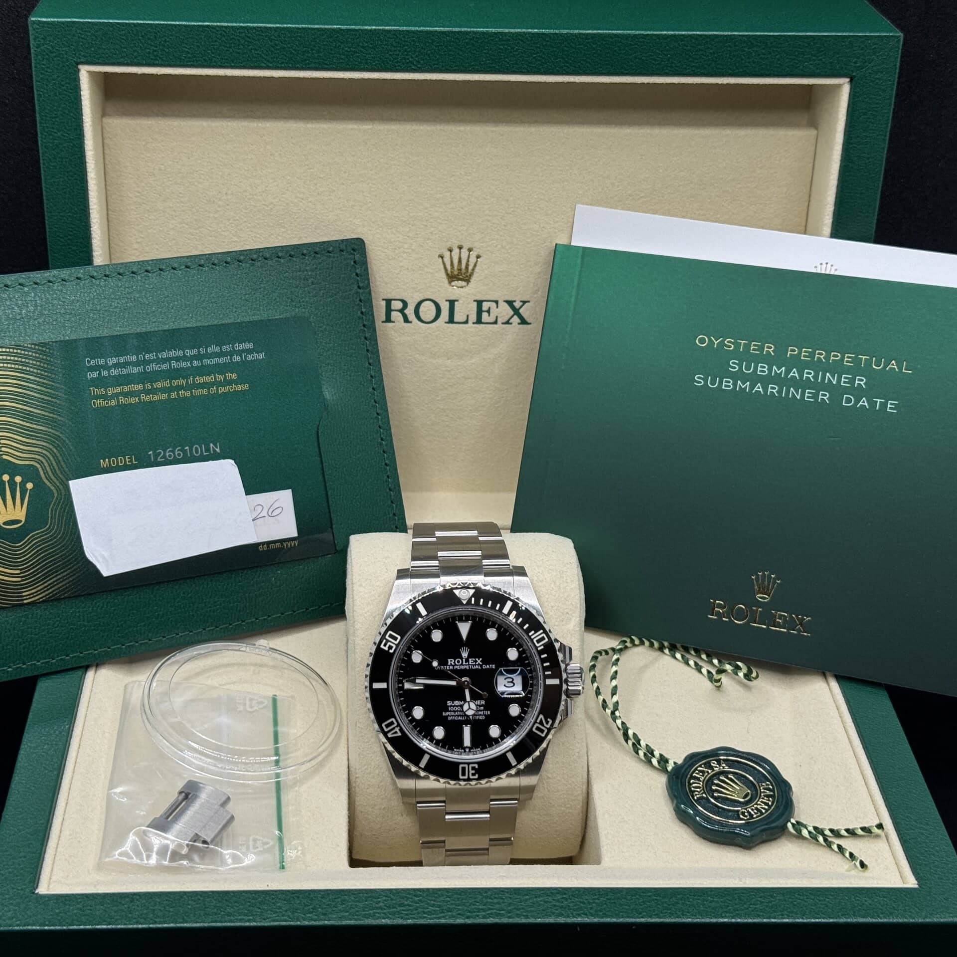 Rolex Submariner Date 126610LN nuovo full set 2026, acciaio 41 mm, lunetta ceramica, calibro 3235. Disponibile subito con garanzia 24 mesi.
