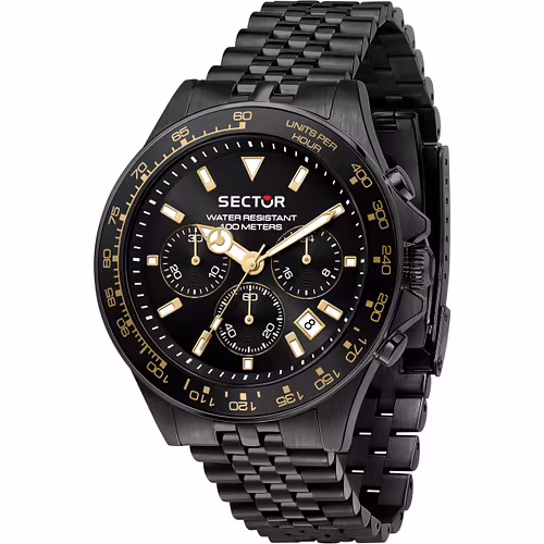 Orologio Sector 230 R3273661029, cronografo al quarzo in acciaio nero 43 mm, cinturino in metallo nero e data. Sportivo, 10 ATM.